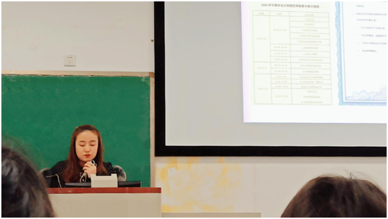杜箫宇学姐详细地介绍综测的评定方式和各个板块,加强同学们对综测的了解。对于保研也充分做出解释,抓住学习的机遇,可以通过普通推免学生、研究生支教团、艺术团等几个方向进行保研,准备好充分的材料,如:专业成绩与排名、作品集、简历等。并着重声明大学英语的四六级很重要。对于学生工作,她提出以认真负责任,积极态度参加各类活动,锻炼社交能力和干事能力,从兴趣出发,选择自己喜欢的且能够锻炼自己的社会实践,充实大学生活。