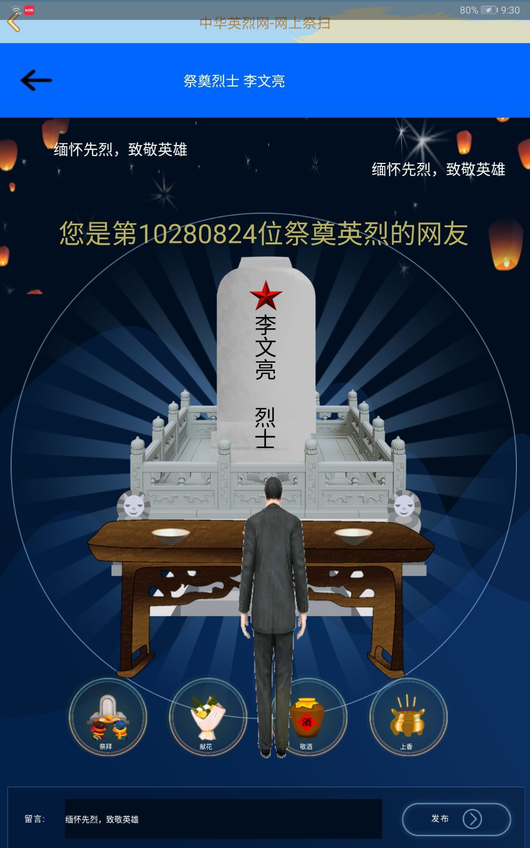 风景园林专业的杨同学感慨道。在此次抗击疫情中,也有很多奋斗在前线的战士们不幸牺牲,而网上祭祀不仅可以祭拜革命先烈,也可祭拜在疫情中英勇献身的英雄们,向他们致以最崇高的敬意。
