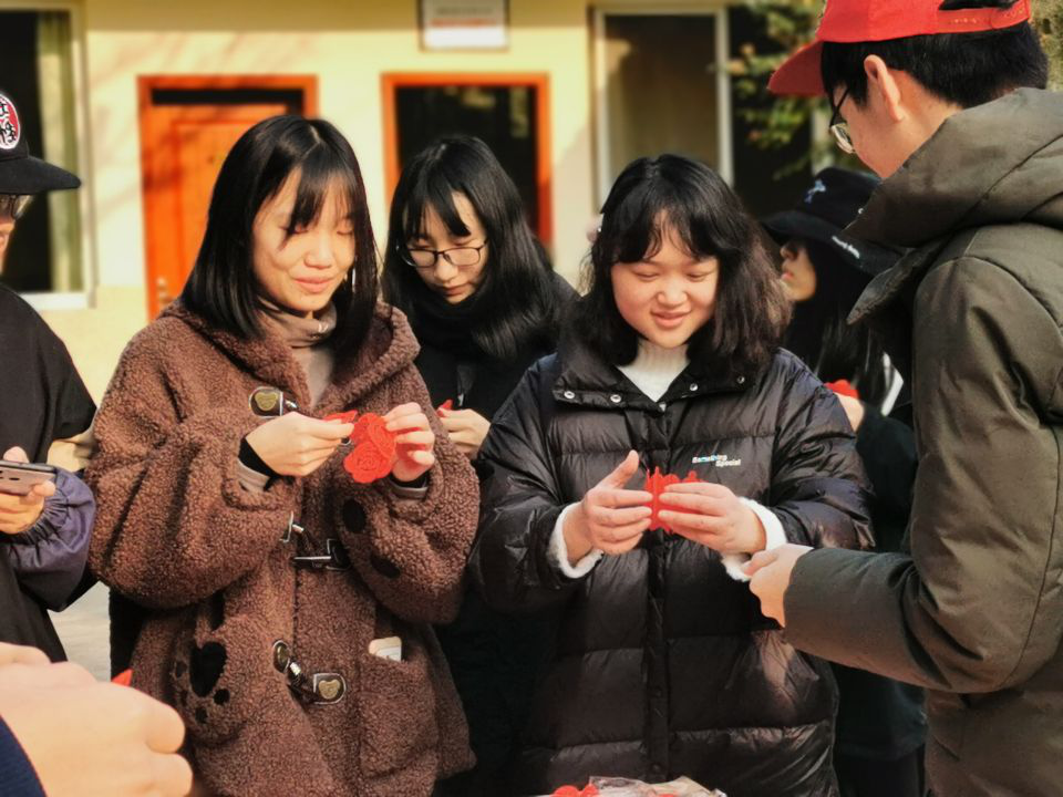 接着是充满童趣的剪纸活动。爷爷奶奶们不愧是“老小孩儿”——他们对于剪纸也是信手拈来,他们富有想象力,他们有自己的想法。一张张平凡无奇的纸经过他们的折叠剪切变成了窗花,变成了动物,变出了一个奇妙的世界,他们让志愿者们感受到他们缤纷多彩的内心。