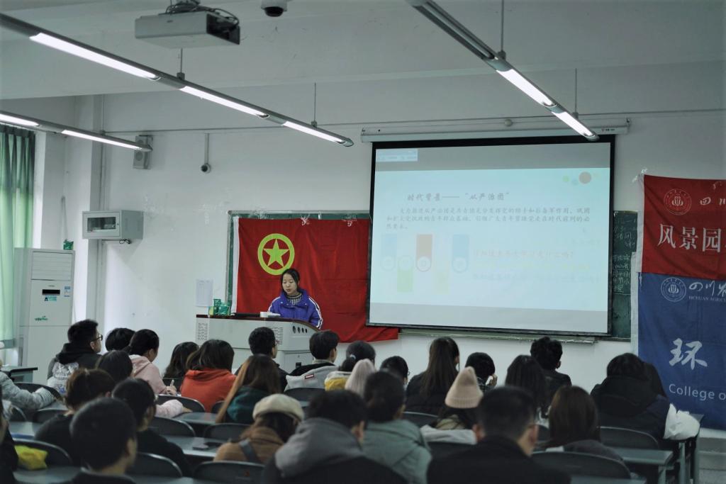 2019年12月5日,四川农业大学环境低调看球 和低调看球 团委在4—B106教室为今年的入团积极分子带来了第二堂入团培训会,这一活动的开展使得广大青年更加具体地了解了中国共产主义青年团,了解他们即将进入的大家庭。