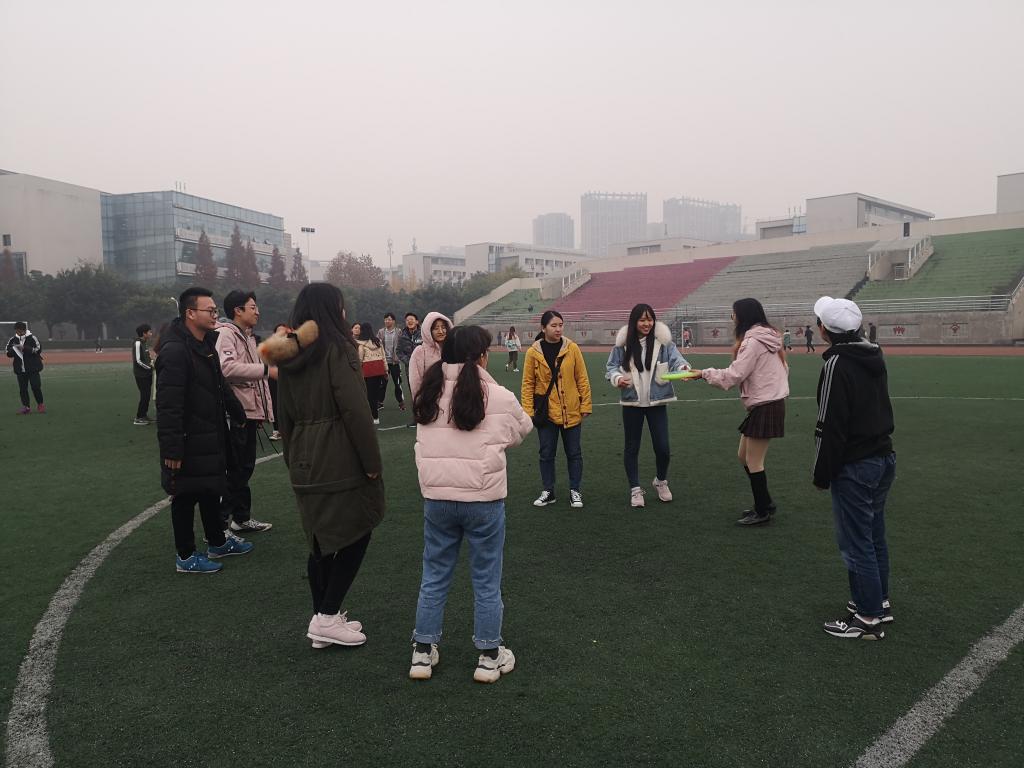 除学习外,健康也是极为重要的一部分。本着“身体才是革命的本钱”的想法,该班负责人唐思结合飞盘协会共同开展团日活动。在介绍完规则、总结了要点后,团日活动的地点由室内转向操场,园林201801的学子们在飞盘协会成员的组织与带领下参与飞盘游戏。该游戏分为传盘与打杯子两个环节,均需同学们齐心协力、共同完成。