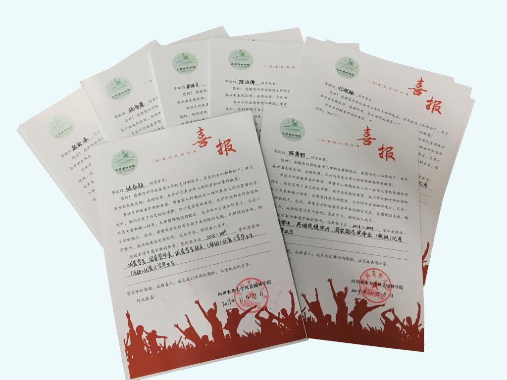 获得优秀学生标兵、优秀学生、国家奖学金、省级优秀大学毕业生4项荣誉的张希颖同学谈到,家人收到低调看球 喜报很惊喜,通过喜报了解到我在校表现情况,并表示很感谢川农大对我的教育与培养。