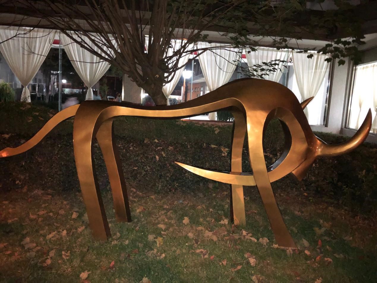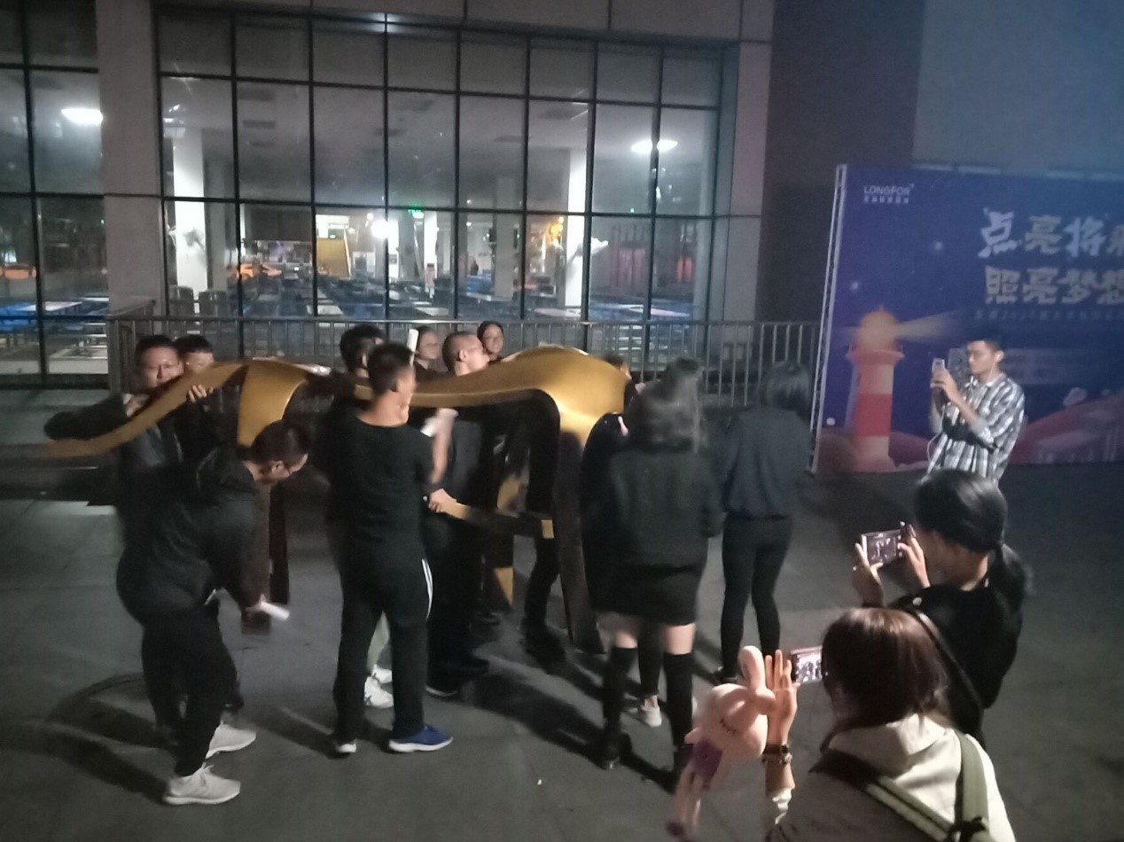 低调看球 面向全校的趣味新闻投稿活动已近半月,期间陆陆续续有不同低调看球 的学生进行投稿。此次展现给大家的是一场妙趣横生的“搬牛”活动,10月12日,新生晚会结束后,经济1902班组成的搬牛小分队开始行动,全班苦苦寻找下,终于在食堂门口抓到一只川农牛。从食堂到七公寓并不近,同学们却几乎是搬着牛一路小跑过去。不知从何时起,校园里出现了几头金色的牛,又来了搬牛大队,搬牛也慢慢地成为了学校的传统活动。可谓来到川农,必定要搬一次“川农牛”!