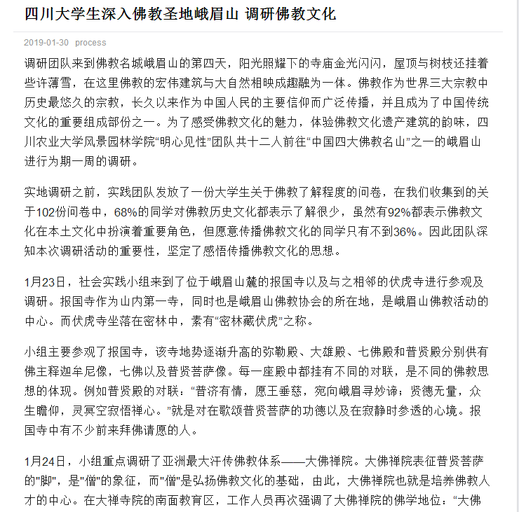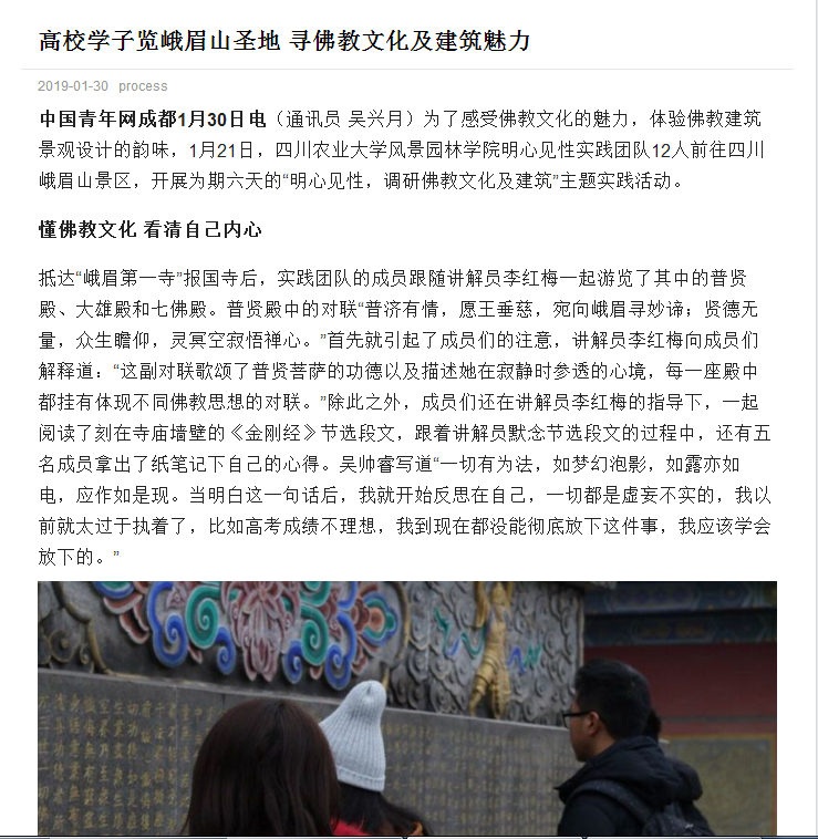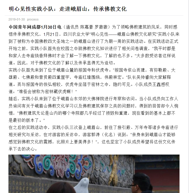 中国青年网(国家级平台):四川大学生深入佛教圣地峨眉山调研佛教文化