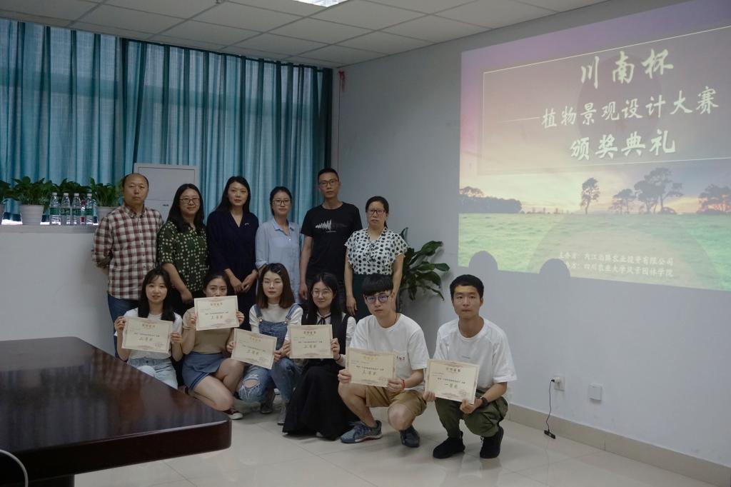 4月24日,由内江尚腾农业投资有限公司和低调看球-低调jrs看球app 共同举办的“川南杯植物景观设计大赛”在7教609完成最终的作品评审并举行了颁奖典礼。内江尚腾农业投资有限公司景区总经理曹国辉,低调看球-低调jrs看球app 院长陈其兵,副院长李西参加颁奖典礼。