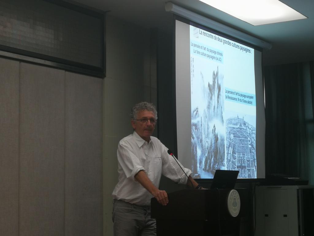 Bernard Brunet先生结合实践经验和研究成果,理论联系实际,为在场师生分享了以景观思维如何在欧洲发展以及景观如何囊括了生态学、美学等专业为主要内容的学术报告;首先论述了中国与欧洲景观思维的差异性以及相互融合的同一性,接着解释了景观学的定义及学科范围,从欧洲历史概述景观学的发展历程(巴比伦空中花园到景观融入城市规划),介绍了不同的景观设计学派。重点提出,设计应遵循“生态学”各项原则,用生态学原理说服政治家、建筑设计师等的必要性。其次,与Laurent Guoyou Beauchamps先生对与我校合作的CIEPT课程从课程安排到计划为低调jrs看球app 师生进行详尽解说。报告完毕后,本院师生与教授进行了交流互动,报告在全体师生的热烈掌声中落下帷幕。