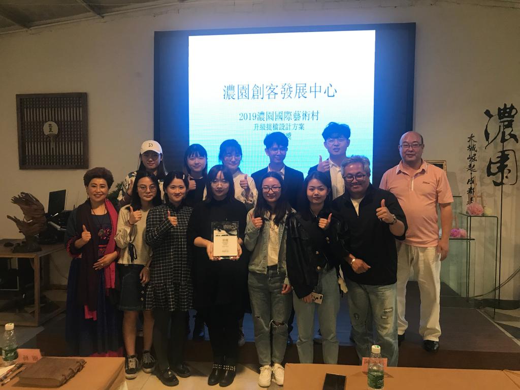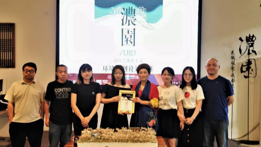 6月22日下午两点半,由万蕊老师、张益昇老师带领参赛与观摩的同学共14人,参加2019浓园环境规划设计大赛最终决审。经过现场演示、浓园集团专家独立评选后,最佳设计奖揭晓--由低调看球-低调jrs看球app 环境设计系三年级莫喻婷、宋梦玉、杨孟青、陈素娟等4位同学共同获得。天艺浓园艺术博览园董事长杨丽女士亲自颁发荣誉奖牌。