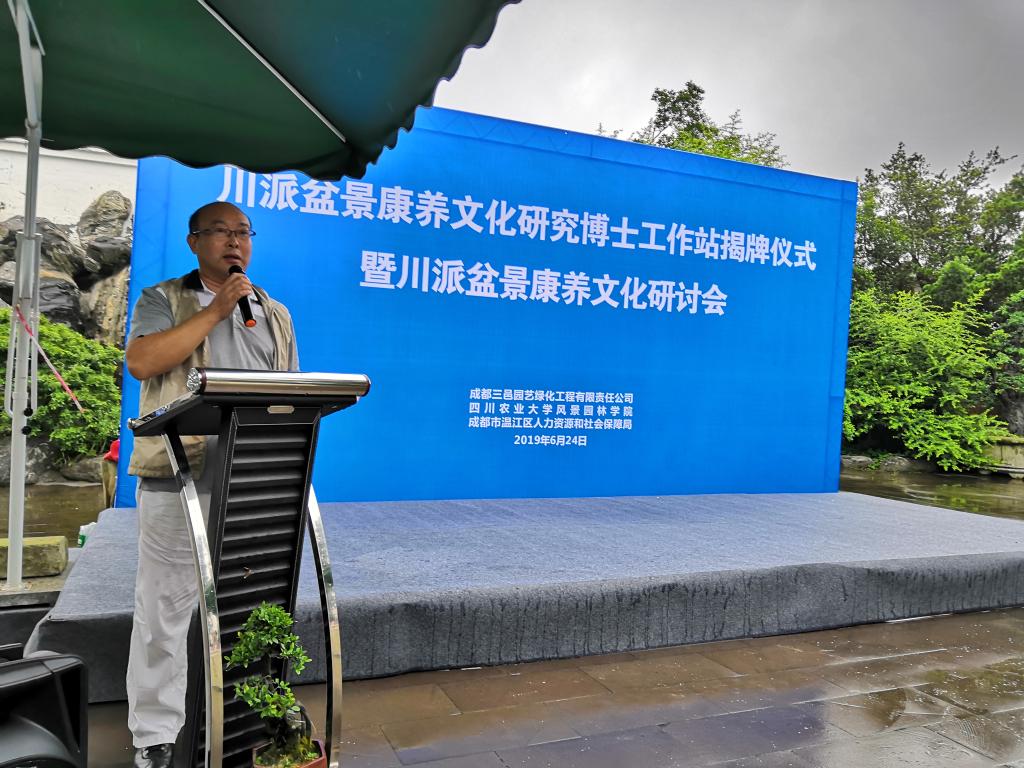 揭牌仪式后,举行了“川派盆景康养文化”研讨会,来自省内的相关专家和温江区各相关负责领导就“川派盆景发展的潜质”、“盆景康养文化与方法”、“川派盆景如何围绕‘三城三都’建设”等议题进行了深入探讨。大家对于博士工作站的成立寄予厚望,纷纷表示通过博士工作站的建设,必将对于促进川派盆景康养文化专业人才培养,推动川派盆景康养文化专业化研究和实践应用,不断丰富和繁荣发展川派盆景文化产业,提升温江“两养”内涵等方面,起到积极地推进作用。