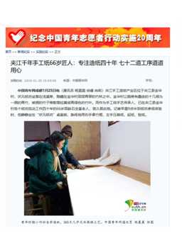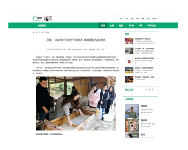 实践结束后,调研团队除了在教育部中国大学生在线发表了一篇新闻,还在中国青年网发表了一篇新闻,而且中青网的人物专访“夹江千年手工纸66岁匠人:专注造纸四十年七十二道工序道道用心”更是被选为中国青年网官网主页人物新闻。