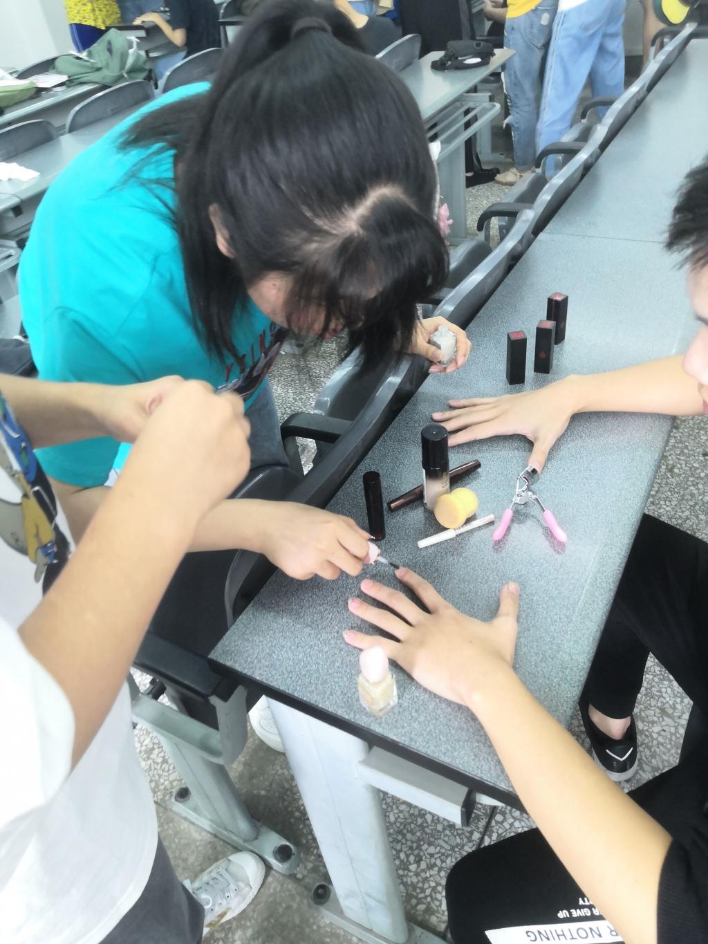 随着宣布活动结束的话音落下,各个小组都带着自己的模特,讲解了妆容,然后开始卸妆,收拾场地。此次活动,丰富了小班同学课余生活,增进了同学间的友谊,也促进了大家对美妆美甲的认识和了解。活动结束,但是妙趣横生的大学生活仍在继续,也将延伸到纷杂的社会中。快乐是创造的,不仅仅来自一场独特的化妆秀,愿所有都要迈入社会的大学学子们找到一种生活,活出一个第一无二的自我。