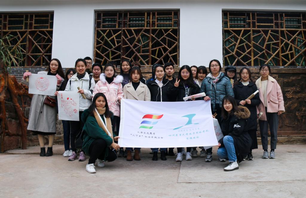 体验完这两道造纸工序后,实践团队又通过印刷年画、书写竹简两个活动来感受夹江纸的实用性。年画印刷所用的纸正是状元纸坊的手工纸,用手指摩挲纸面,还能感受到纸的平整和肌细。印刷年画时,先将需要的颜色均匀地刷在画版上,再将纸轻轻覆上,接着用刷子拂过整张纸面,一张工整清晰的年画便印刷完成了。夹江竹纸在印刷过程中不易破损,并且保留色彩的效果极佳。实践小组的成员们纷纷表示该过程十分便捷、有趣。书写竹简时,成员们认真对待自己编好的竹简,写上心中所想。一撇一捺间,是现代语言与古代书写工具的交融。尽管如此,他们仍表示纸的使用感受略胜一筹。