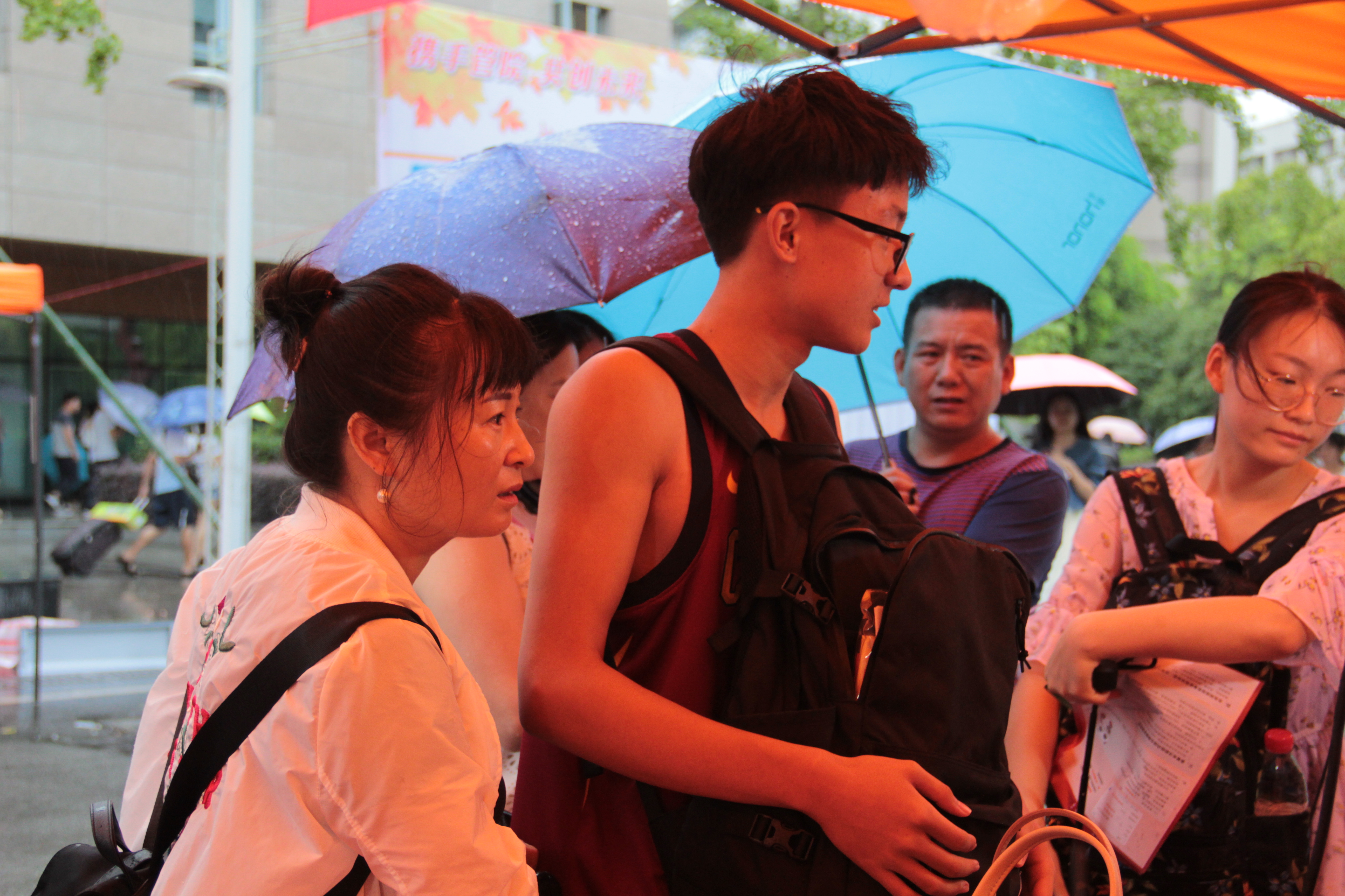 今天是新生报到的第一天,天空淅淅沥沥的下着雨,凉飕飕的,但是,风雨无阻,师兄师姐们都积极热情的等候着我们2018级的新生们,这眼前和谐的一幕,更是让人期待接下来的新生报到。