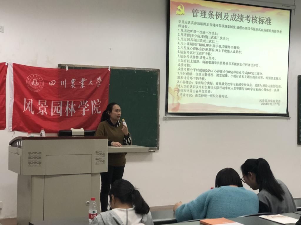 10月17日,四川农业大学第86期党校成都校区入党积极分子培训班低调看球 动员大会在第四教学楼A栋106举行,党委办公室王丽萍等七位老师到场,为在座80位党校学员介绍党校的基本要求。