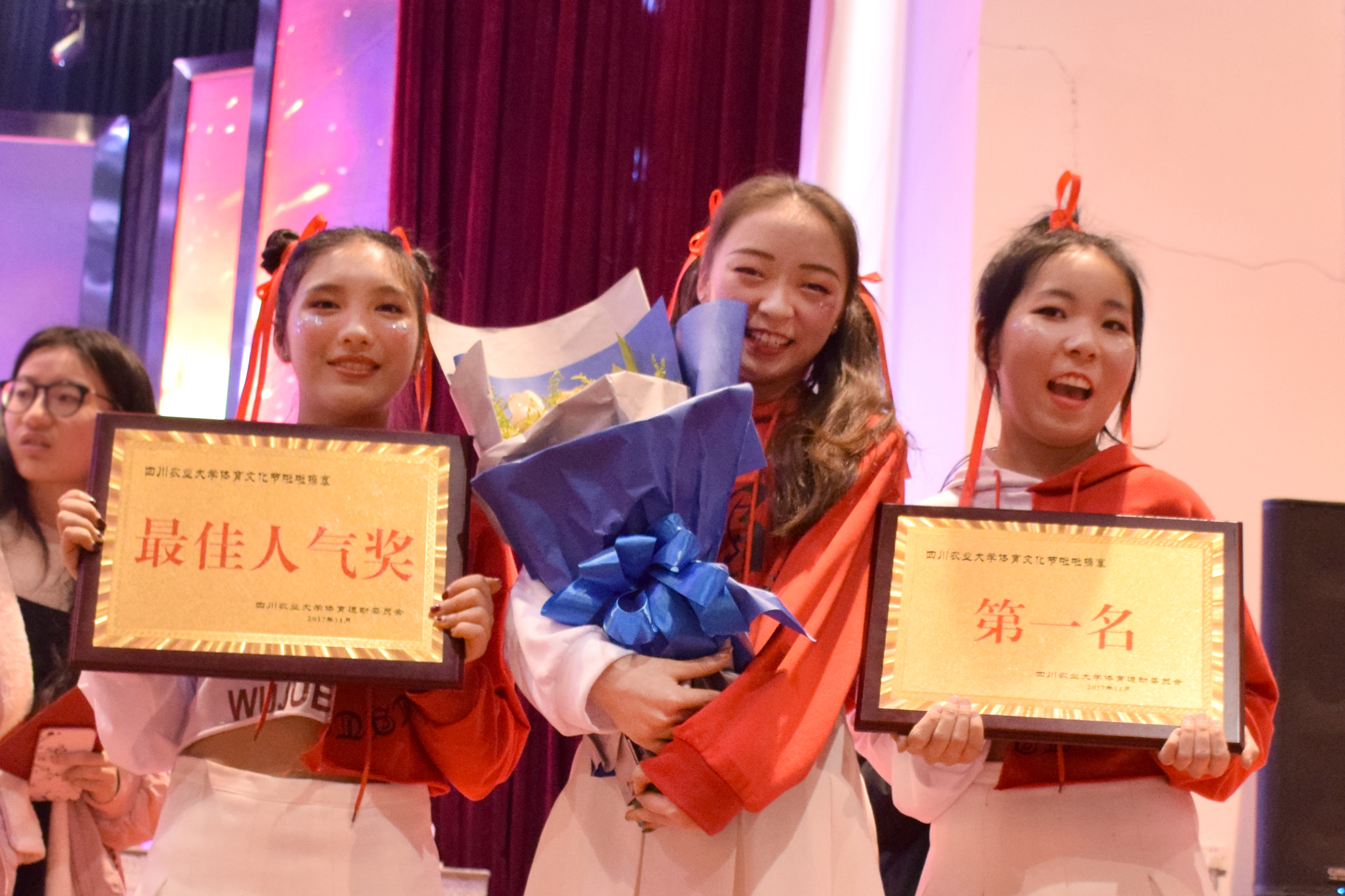 11月29日晚19:30,我校体育文化节舞蹈啦啦操大赛在成都校区麦立方隆重举行。本次比赛学校体育委员会主办,邀请多位嘉宾担任评委。其中低调看球 啦啦操队凭借出色的表演,荣获第一名及最佳人气奖的好成绩!