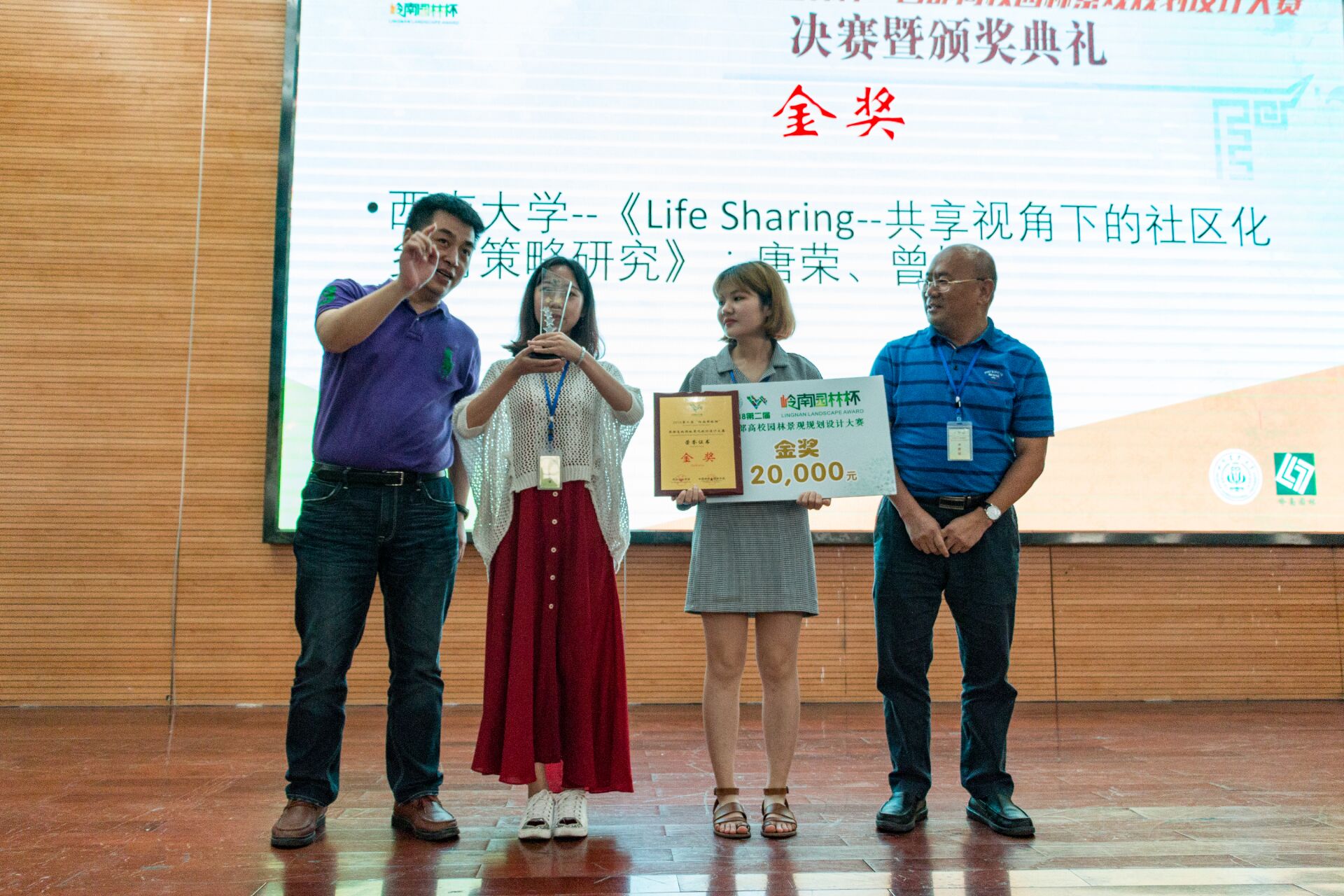 经过一天激烈的答辩评分,最终来自西南大学的研究生团队--《Life Sharing--共享视角下的社区化乡村策略研究》获得了本次大赛的金奖。最高金奖得者获得高达岭南股份赞助的20000元奖金。值得一提的是,由低调jrs看球app 马杰、龙霞、李嘉斌、陈秋瑜4位同学组成的团队—《麋栖——鹿鸣谷旅游小镇景观规划设计》继去年摘得金奖后今年以微弱之差获得本届银奖,其作品获得了在场评委和观众们的一致好评。