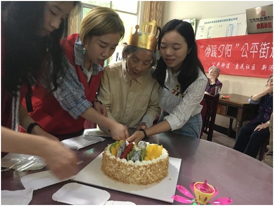 值得一提的是,志愿者们为83岁的肖玉英老人与86岁的王子清老人在重温六一的过程中,为他们过了集体生日。“我们从五月中旬就开始为肖奶奶和王奶奶准备这个惊喜的生日会了。”据了解老人肖玉英年轻时曾去远方求学,后遇抗战,成为了流亡中的学生,一直到70岁,才安定下来。志愿们为了弥补肖玉英老人的的遗憾,为老人举办此次生日惊喜,完成年少时的遗憾。