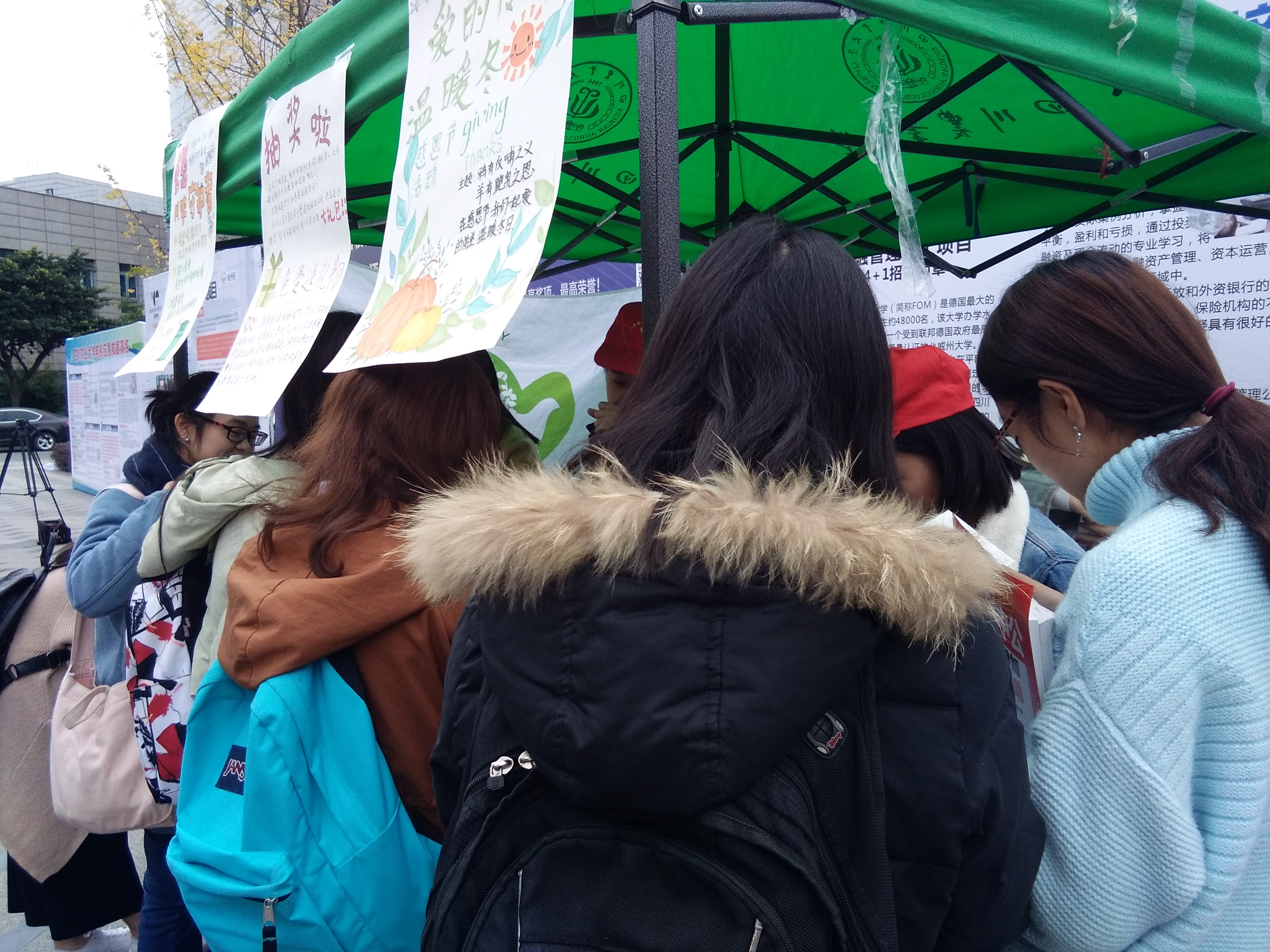 该活动分为两部分,第一个部分旨在向“川农守护者”道出川农学生的感恩之情。有近百名学生踊跃参加,给校园内的工作人员细心书写明信片表达对他们默默付出的感谢。第二部分则是以交换明信片的形式,认识校园内擦肩而过的陌生人,分享他们感恩的话语。其中不乏有同学将自己对老师,舍友的感谢写在明信片上,青年志愿者协会的工作人员则扮演“快递员”,将他们的明信片与感谢一同传递。