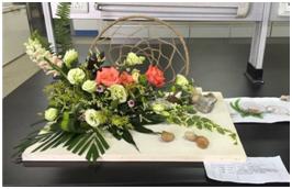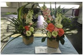 比赛开始,各参赛小组有序进场,认真倾听比赛规则,接着根据所提供花材,构思、创作插花作品。经过两个小时的比赛,各小组完成了作品,并在风景园林协会工作人员的带领下把自己的作品摆放到5教709教室。当天晚上,经过专业老师的评审,其中20组作品被选入大众投票环节。
