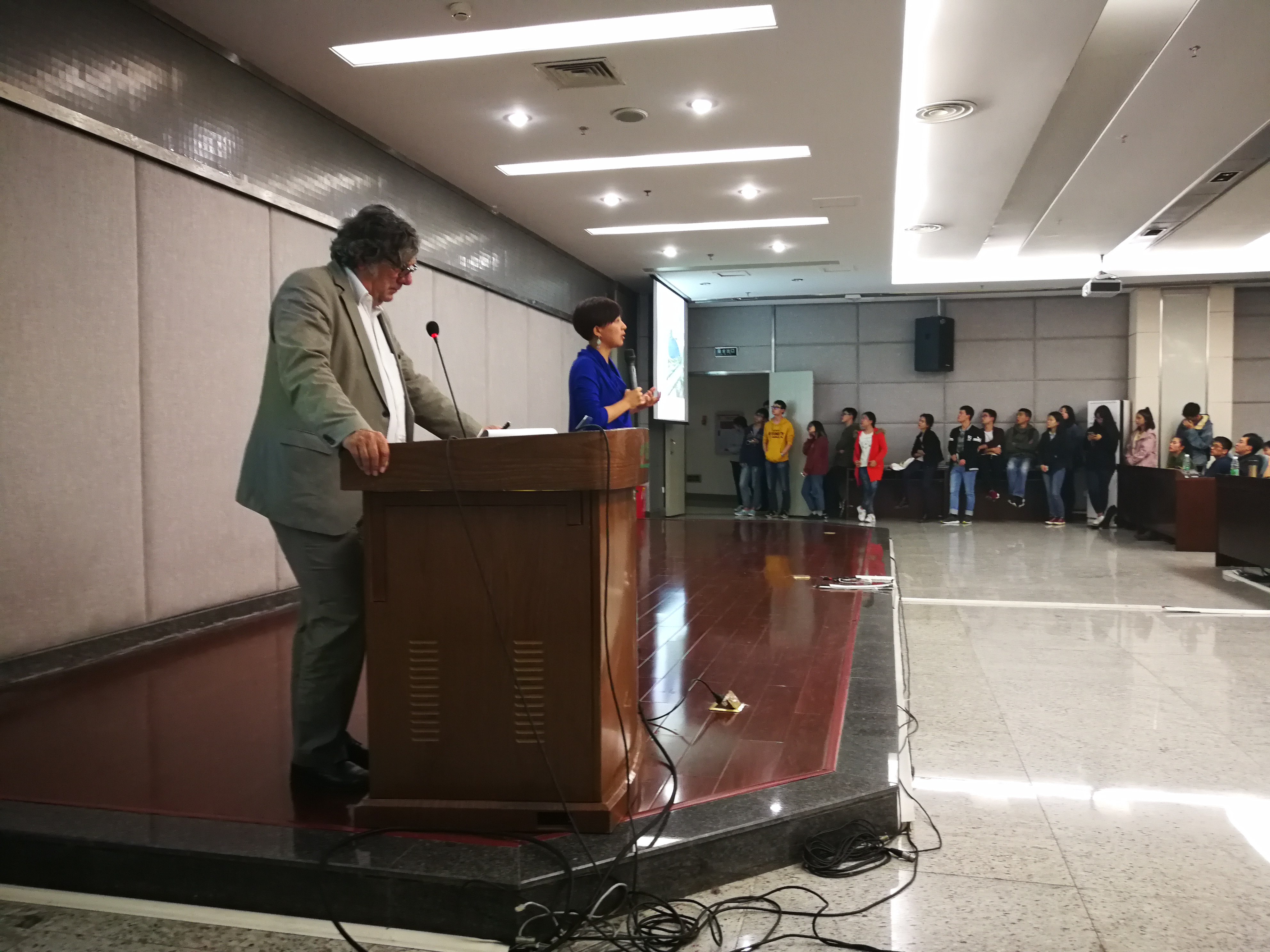 温颜洁副总裁是低调看球 优秀校友,做了《新中式園林設計分享》的报告,解读了传统中式园林案例、中式风格、空间结构、设计手法、材料细节和新中式案例分析。阿兰·库斯朗会长和何维洁会长做了《法国绿色建设及经验分享》的报告,从海绵城市概述再到自己的设计项目分享,法国绿色建设的经验分享引起了同学们对中国未来绿色建设的思考。