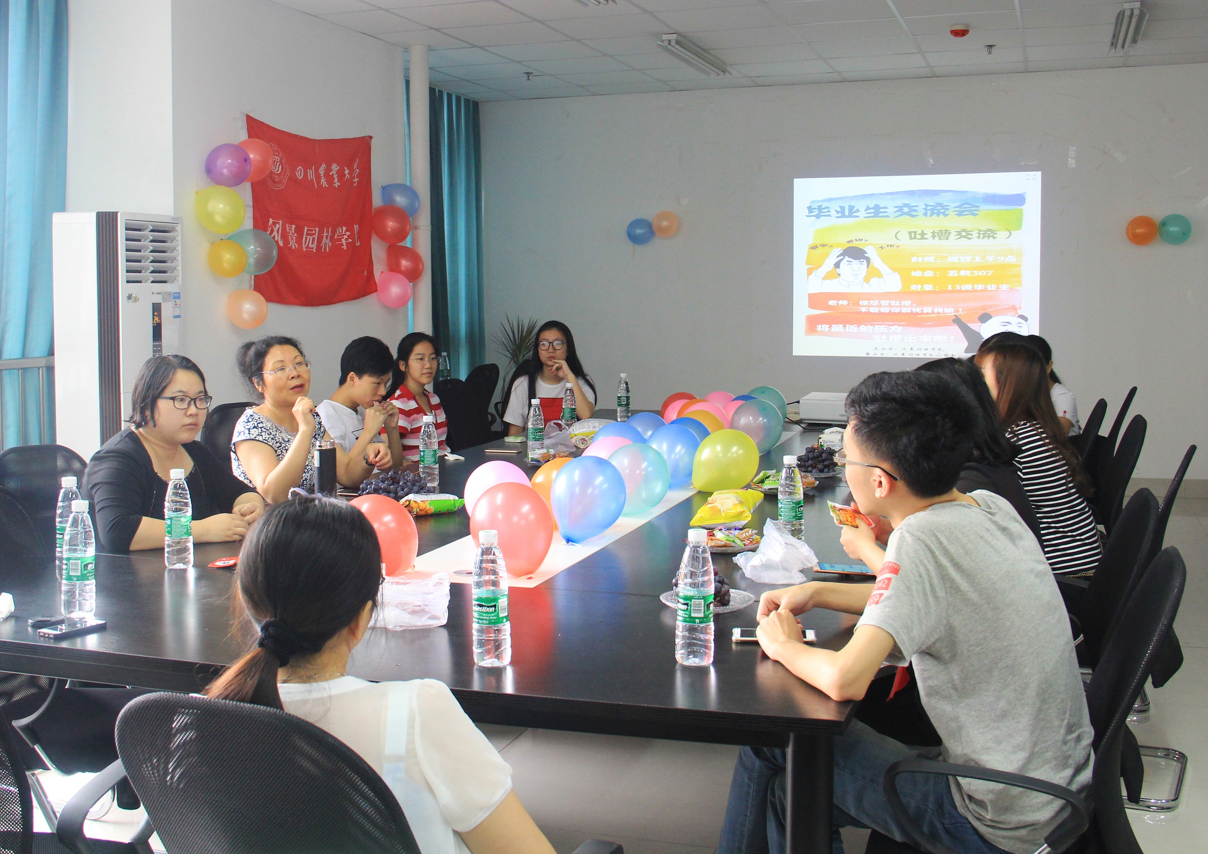 在线下,低调看球 党委书记陈中桂老师一改往日端庄的“风院女神”范儿,像一个知心大姐姐一样坐下来倾听即将毕业的同学的吐槽。吐槽主题随时直播给线上同学。同学们共同吐槽了关于实习工资低的问题,大学爱情的不易心声,学校生活中的不如意,师生间的摩擦等等。从吐槽出发,我们把毕业生共同的很多问题摆出来,各抒己见。同学们发现,原来实习工资低是因为实习的回报不仅仅是现金回报,还有包括人际交往、灵活性与原则性、技能技巧等经验回报,是学校学习的延伸。当我们吐槽爱情,我们才开始懂得爱情的真谛—真诚和责任。当我们开始吐槽学校设施,才发现学校条件比实习地条件好多了,我们开始不舍校园,不舍食堂的饭菜,不舍宿管的阿姨大叔,不舍要求严格的老师……当我们吐槽在学校被某某老师狠狠批评过,才发现原来不关心你的人才不想对你多费口舌。最后,老师代表也开始了吐槽模式,在幽默的“我要吐槽中”我们总结出了一个更好的师生共处模式,多些互相理解与宽容,少些伤害。