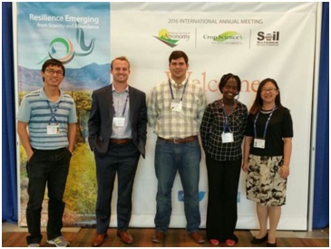 留学期间,江明艳积极参加各类学术活动,以开拓视野,积累科研经验。一年来,她定期参加植物科学系每两周一次的研讨会系列讲座,以及实验室每周的组会;旁听研究生、本科生课程,参加研究生毕业答辩;考察实验室,教学农场和校园园林绿化管理部门;参与课题组研究成果的市场推广宣传手册、农场科技培训海报等的制作,涉猎内容广泛。此外,她参加了在菲尼克斯市举办的美国农学会、作物学会和土壤学会(ASA,CSSA,SSSA)的国际年会,以及在圣路易斯市举办的美国高尔夫协会(USGA)年会,合作完成会议论文2篇。