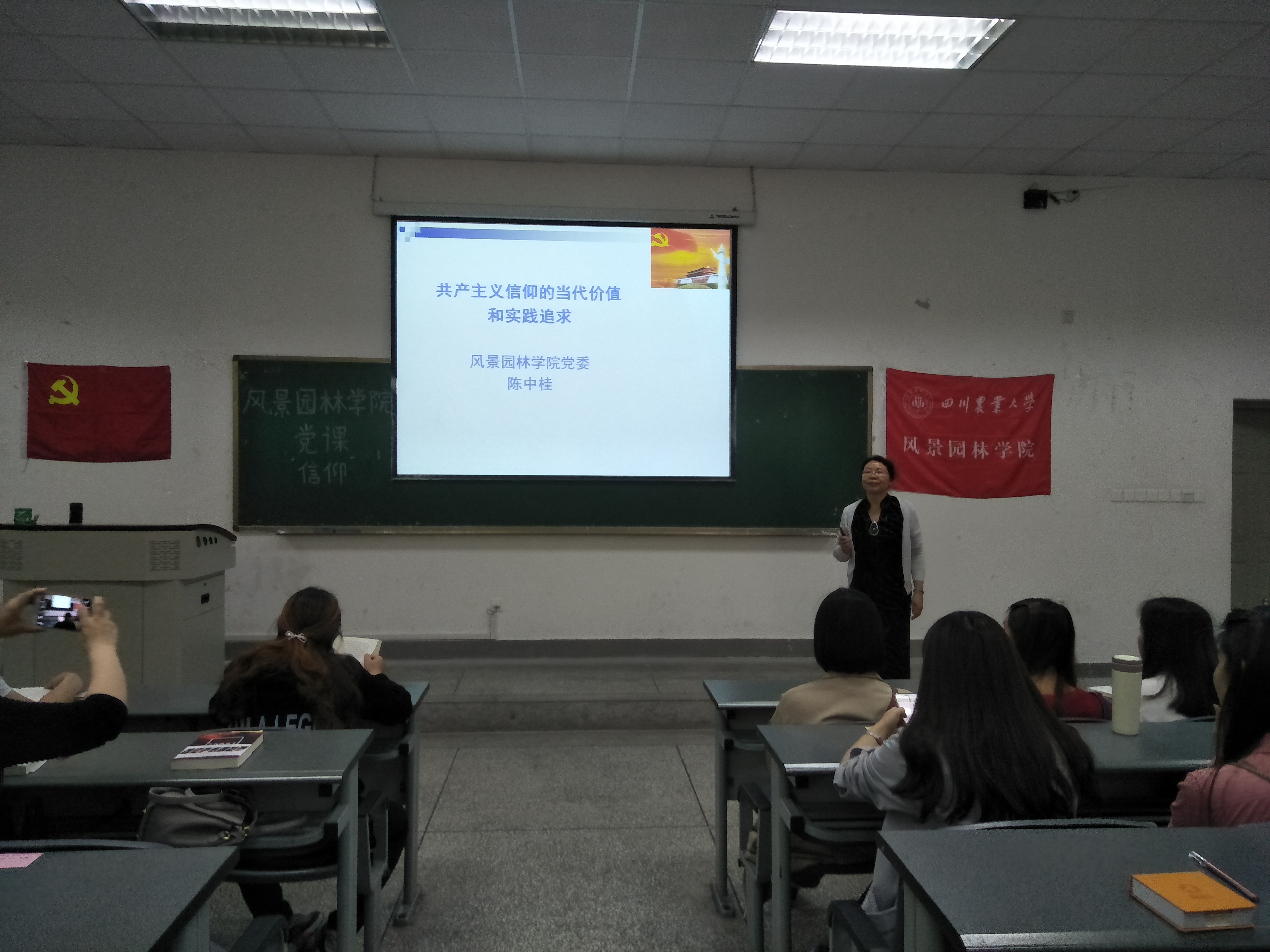 为使低调看球 全体党员更好的实施“两学一做”教育活动,提升低调jrs看球app 师生党员的党性修养,加强低调jrs看球app 党组织和党员队伍的建设,不断提高广大党员思想上的先进性以及践行社会主义核心价值观的自觉性。4月18日中午,院党委书记陈中桂主讲《共产主义信仰的当代价值和实践追求》的党课在4A105教室举行。全院教职工党员、学生党员、预备党员和第83期入党积极分子参加了本此党课的学习。