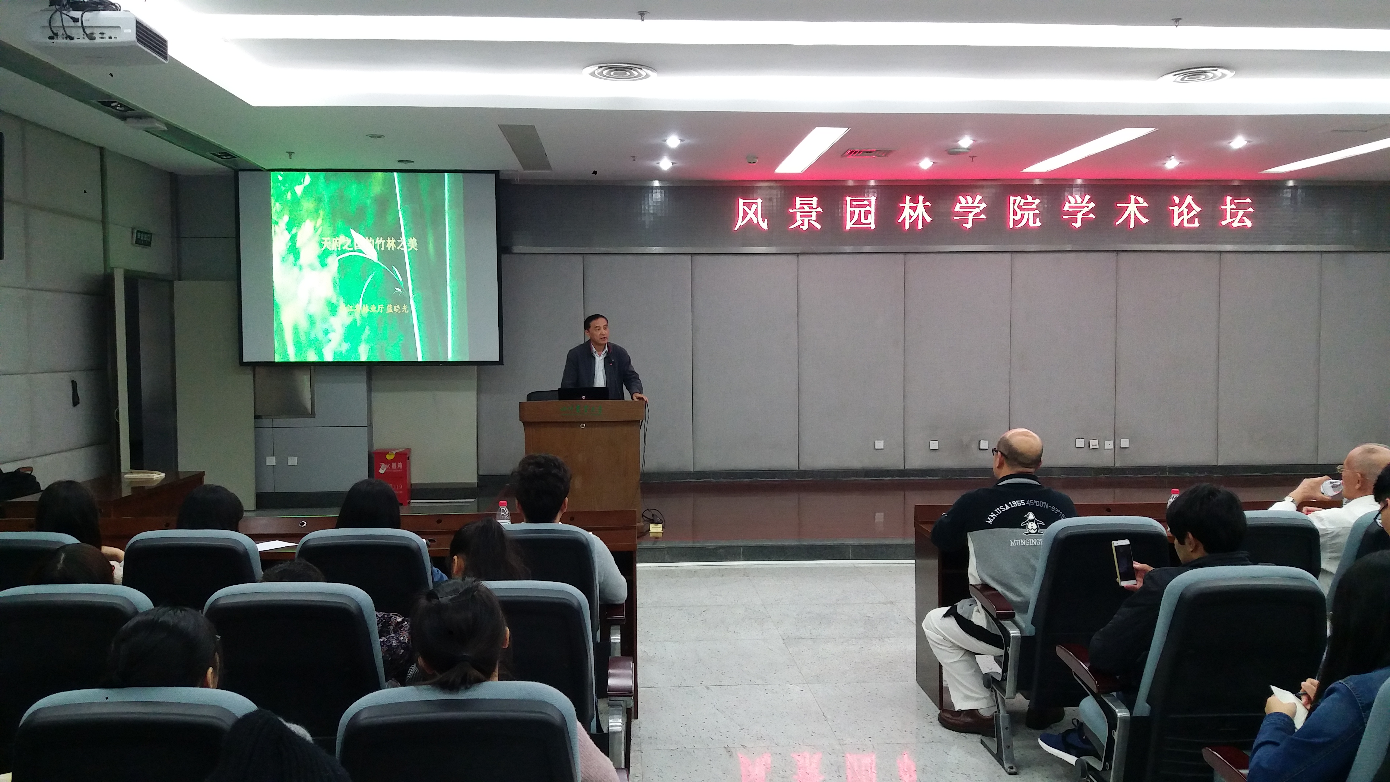 付懋毅以《丝路竹况》为题,为广大师生分享了范围内竹种分布、生态习性气候的概况,欧洲、南美洲和北美洲、东南亚以及非洲部分区域竹种分布及种植情况的特点。他还就不同气候区域中,人们在竹子的生产、生活中加工食用甚至工艺品制造等方面的工艺水平一一做了介绍。