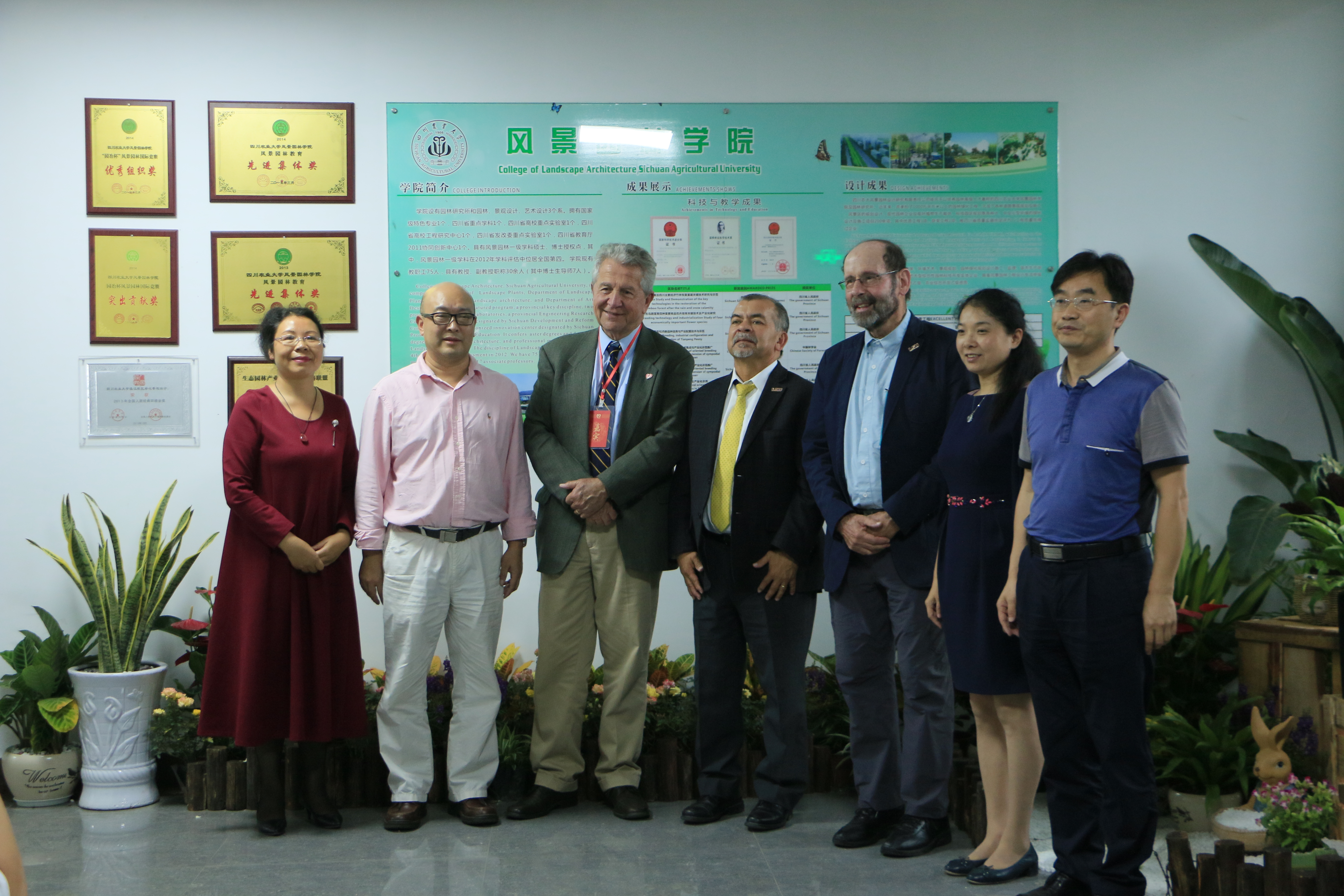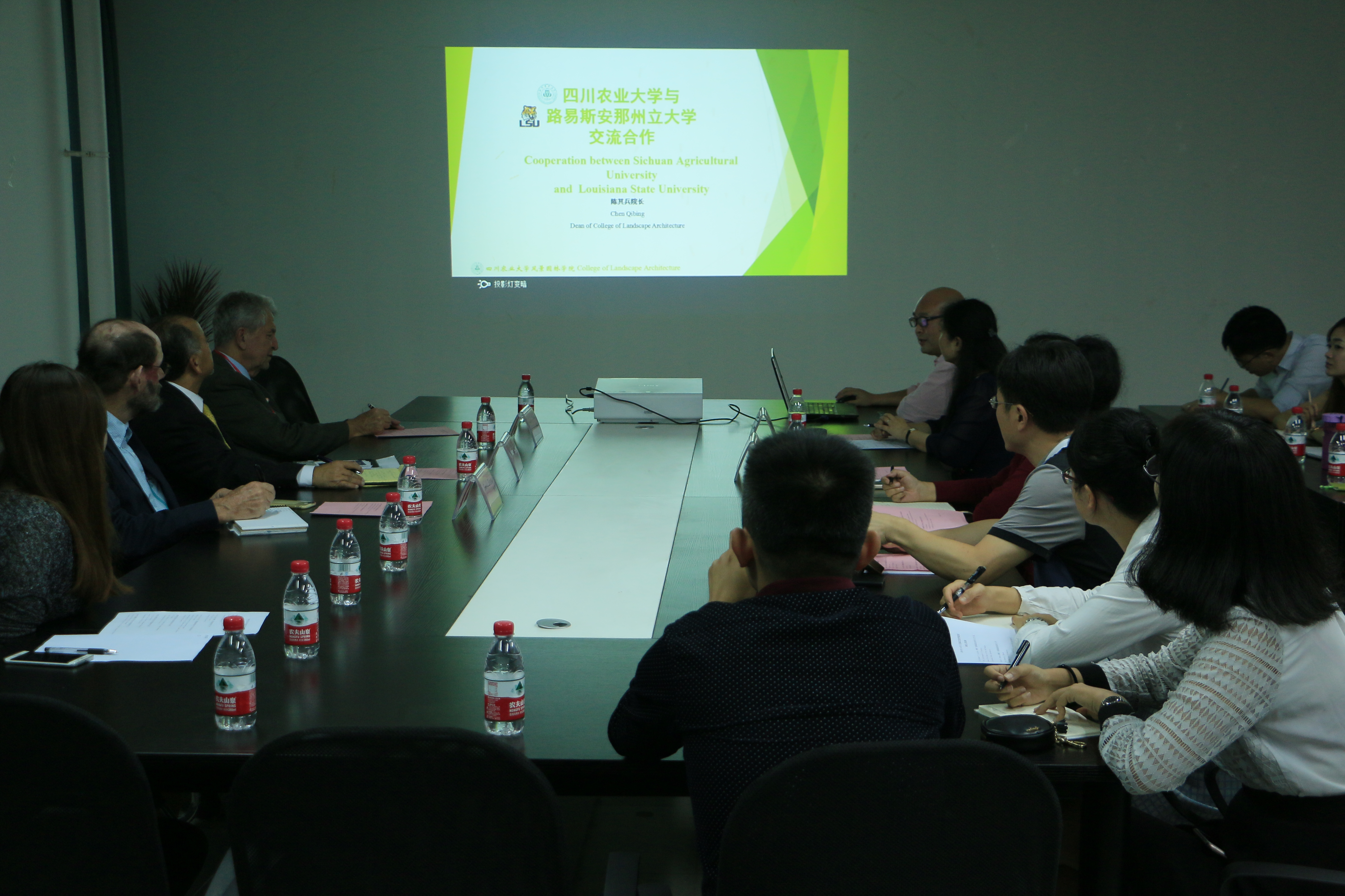 10月5日,美国路易斯安娜州立大学学术代表团做客低调看球 ,庆祝我校110周年生日,并就两校交流合作问题进行座谈。美方代表团到访有景观系院长Alcibiades P. Tsolakis 教授,景观系Bruce G. Sharky教授,国际交流中心主任Hector O. Zapata博士。低调看球 院长陈其兵教授,党委书记陈中桂副教授,副院长潘远智教授,国际合作处处长夏新蓉教授出席座谈会。陈其兵院长主持,夏新蓉处长致欢迎词。