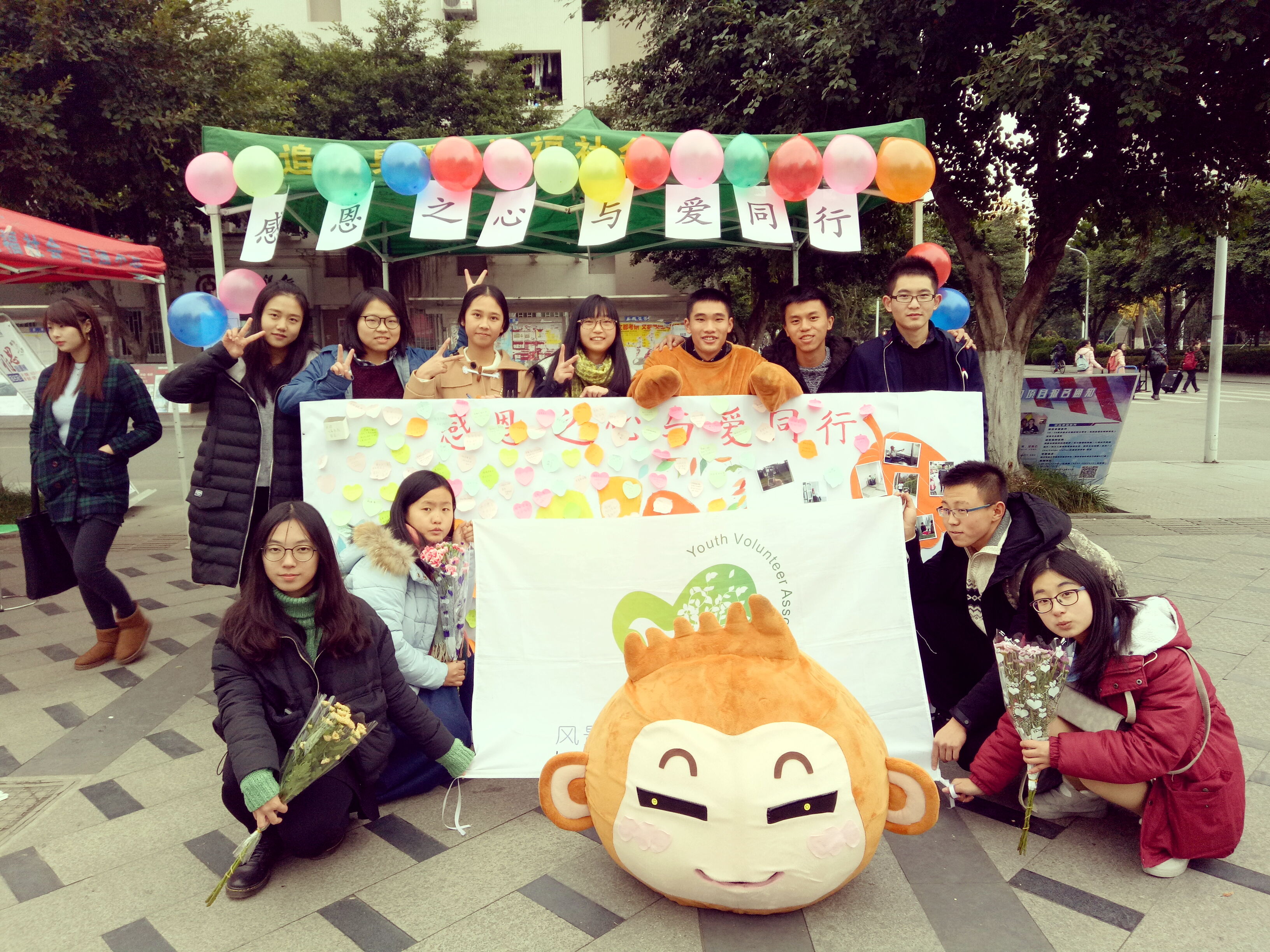 2016年11月24日,低调看球 青年志愿者协会在食堂小广场开展了以“感恩之心,与爱同行”为主题的感恩节特别活动。