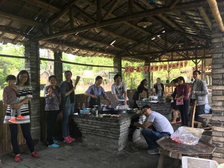 老师们按照预先分组,择菜,洗菜,煎炒烹炸,各个环节合理分工,有调不紊,配合默契。经过大家的共同努力,一盘盘色香味俱全的美味菜肴端上了餐桌,大家在品尝美味的同时,分享着工作中的得失经验,共同谋划低调看球 和学科发展。