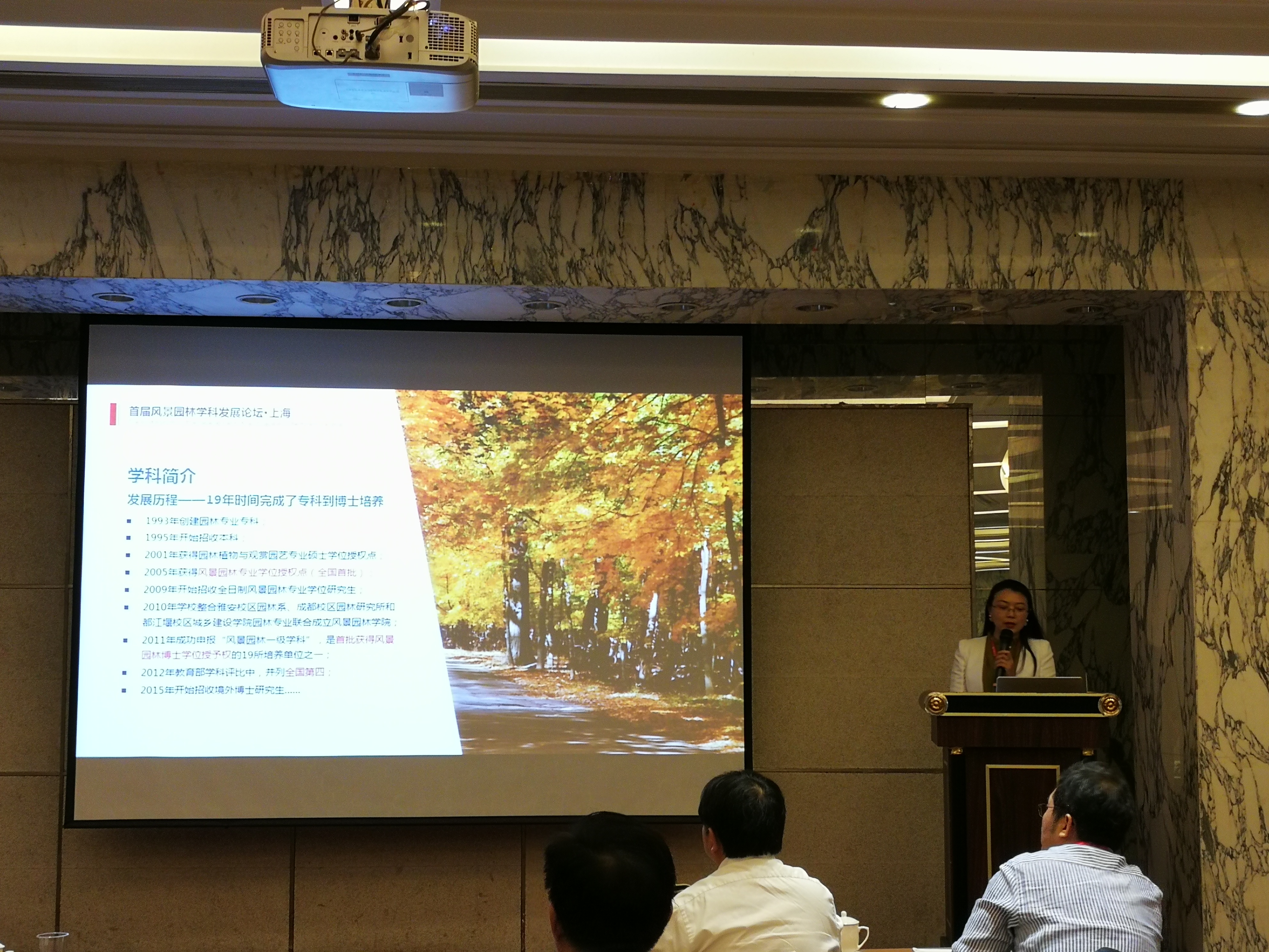 4月22-23日,由国务院学位委员会风景园林学科评议组发起主办,同济大学承办的“首届风景园林学科发展论坛”在上海召开。此会论坛旨在通过全国各风景园林博士点、硕士点培养单位的思想交流,探讨风景园林科学研究在学科走向、教育体系、师资建设、学生培养等学科中的作用机制,面向未来,从问题入手,总结经验,寻找对策。低调jrs看球app 高素萍教授、国家风景园林学专业学会教育指导委员会委员,代表我校在会上就风景园林的学科发展,研究生培养,师资人才引进,办学过程中的体会在大会上作了报告。报告结束全场报以热烈掌声,对我校在风景园林学科建设中做出的努力表示极大的赞赏!
