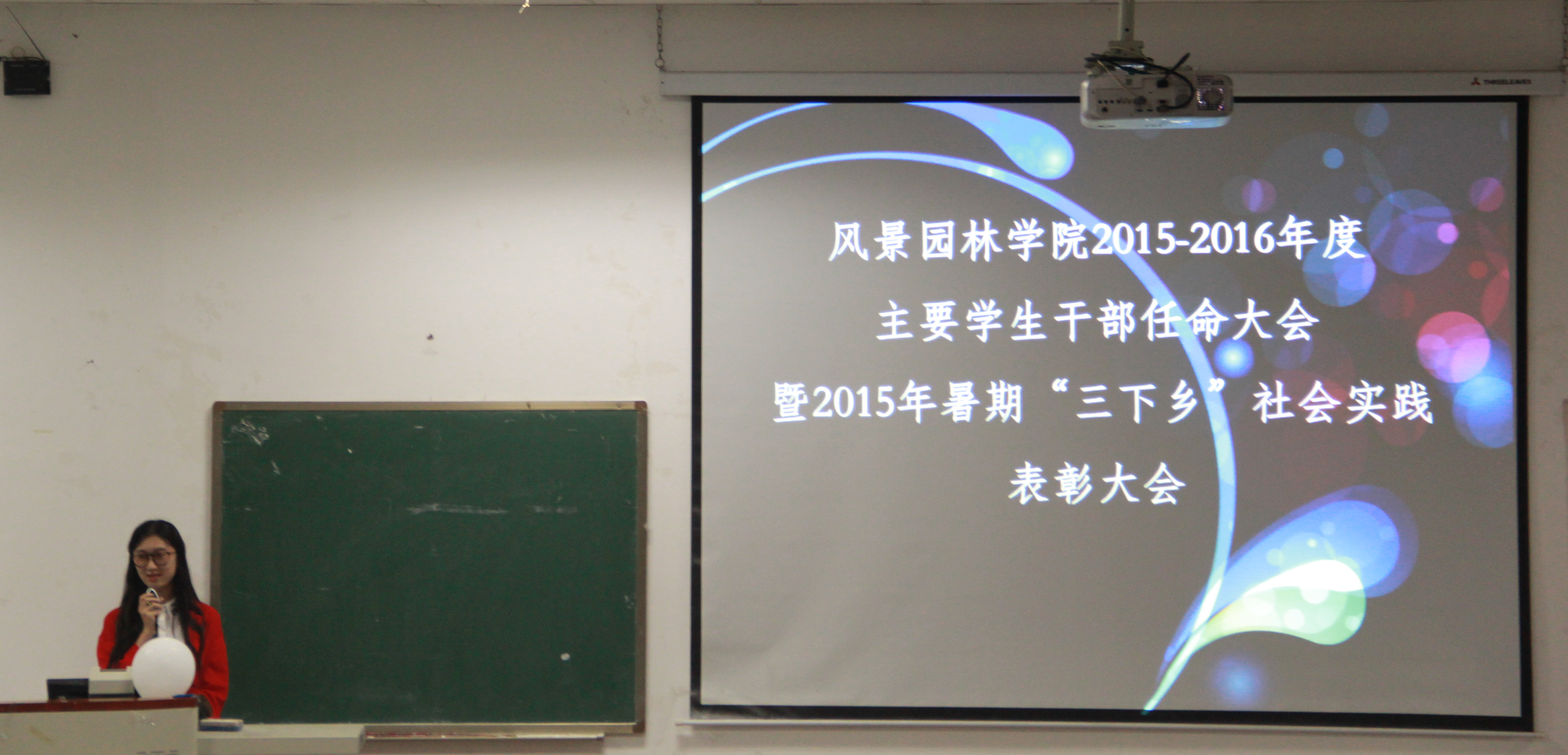 2015年10月20日晚6时,低调看球 2015~2016年度主要学生干部任命大会暨2015年暑期“三下乡”社会实践表彰大会于4A202顺利开展。