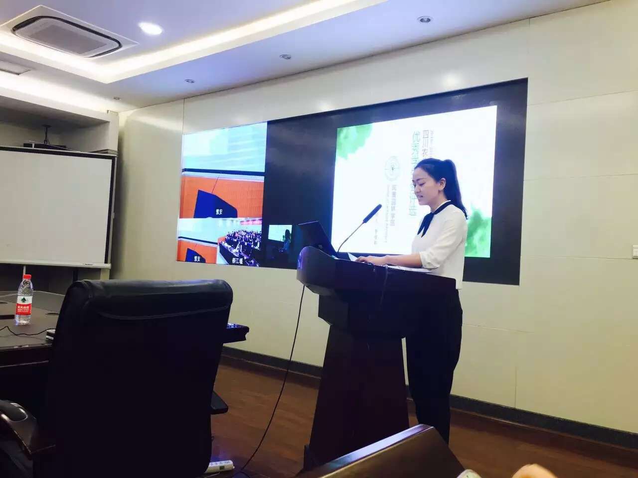 代表低调看球 学生会上台答辩的是低调看球 学生会主席李佳岭同学,她分别从“骨、韵、翼”三个方面来概括和介绍低调看球 第六届学生会组织。