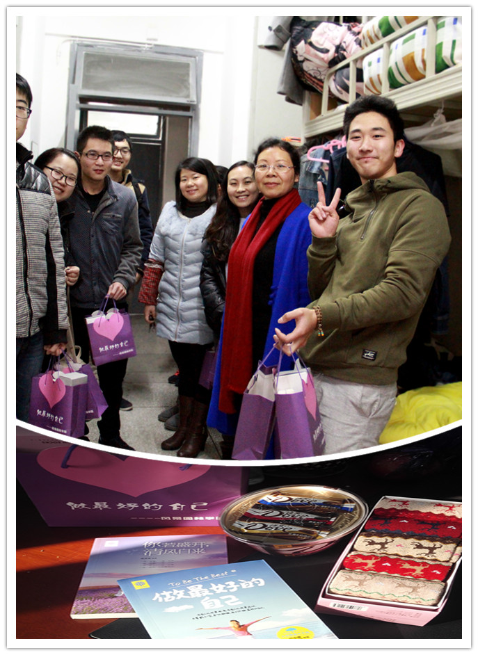 风景园林冬日送暖还在进行中,各班班主任也都纷纷到寝室送去勉励和祝福,淡淡寒梅香,浓浓感恩情在校区弥漫。