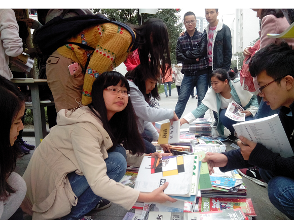 为了能使书籍得到最大限度的再利用,志愿者们积极投入前期意见征集和宣传工作。在义卖宣传点,醒目的宣传板,美丽的蛋糕模型成功吸引了大家的眼球。宣传工作结束后,部门成员对收集的信息进行了归纳整理,并以此为依据带领流动志愿者下寝收书,通过他们的不懈努力,收集到大量书籍并进行了分类标价,为下一步义卖书籍活动做好了准备。