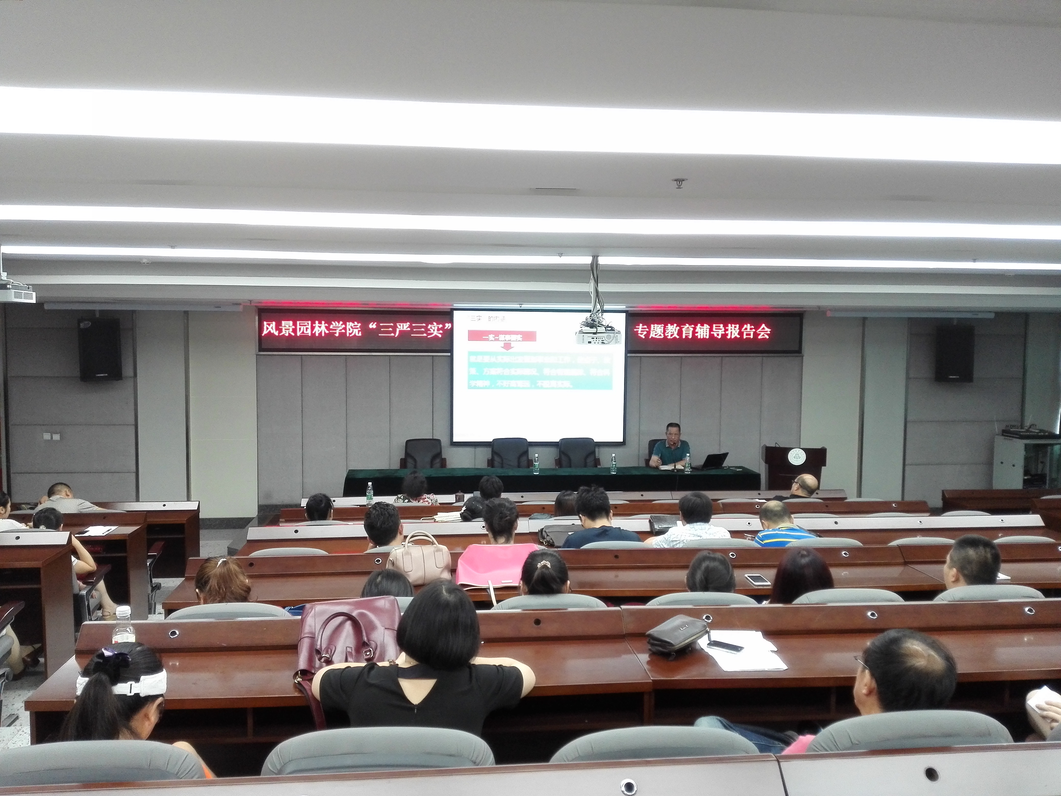 7月16日,低调看球 在1教309学术报告厅召开“三严三实”专题教育辅导报告会,低调看球 全体教职工和部分学生党员参会。低调看球 党委书记马明东同志以“践行三严三实,正身守规善为,促低调看球 工作全面发展”为主题作了辅导报告,报告会由陈其兵院长主持,