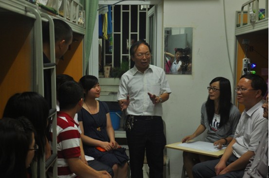 男生2幢2单元219房间早早地就集聚了不少的兴奋不已的同学,大家对学校领导的到来表示了热烈欢迎。学校党委书记邓良基代表学校领导对毕业生表达了祝贺,他说:“你们圆满的完成了学业,即是奠基未来的第一步。”王刚校长也对毕业生们作出祝愿,希望他们带着川农大精神,求实创新,坚定信心的走向社会。