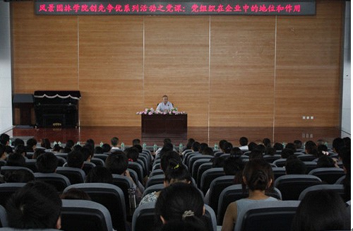 创先争优系列活动之党课在成都校区二教学楼学术报告厅正式举行。成都棠湖投资控股(集团)有限公司高级顾问、党委书记、“四川省优秀企业”高级经济师严统明用朴实、生动的语言为现场师生讲授了题为《党组织在企业中的地位与作用》的党课,为大家诠释了党组织在民营企业中的地位与作用。