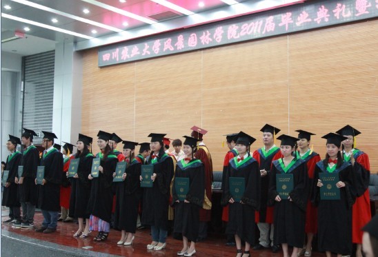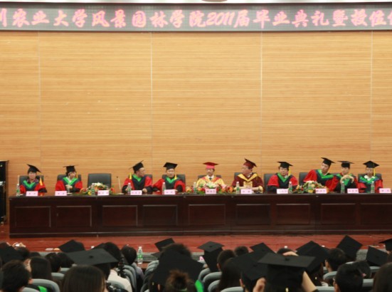副院长潘远智教授主持,全院2011届毕业生、部分老师和家长代表近400人参加了典礼。学校校长郑有良教授、成都校区党委张强书记、成都校区校长王刚教授、成都校区常务副校长周永红教授等领导出席典礼并为315名毕业生授位。