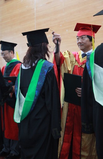 学位评定分委员会的老师们为毕业生授位之后,本次毕业典礼的授位仪式在悠扬的《毕业歌》歌声中落下帷幕。