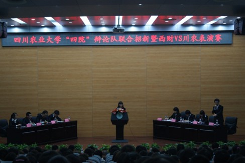 10月10日晚,四川农业大学成都校区辩论队与西南财经大学辩论队在第二教学楼学术报告厅进行了辩论表演赛。旨在促进我校与西南财经大学的相互交流,并对成都校区各低调看球