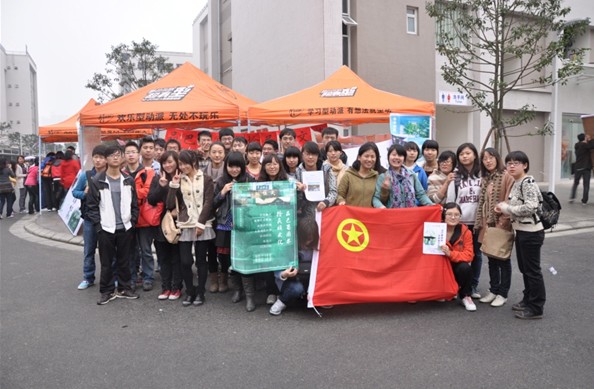参加四川农业大学第五届暨成都校区第二届团日活动设计大赛的“品巴蜀园林,拾民族文化”活动分队在五公寓小广场举办了中国地域文化展。