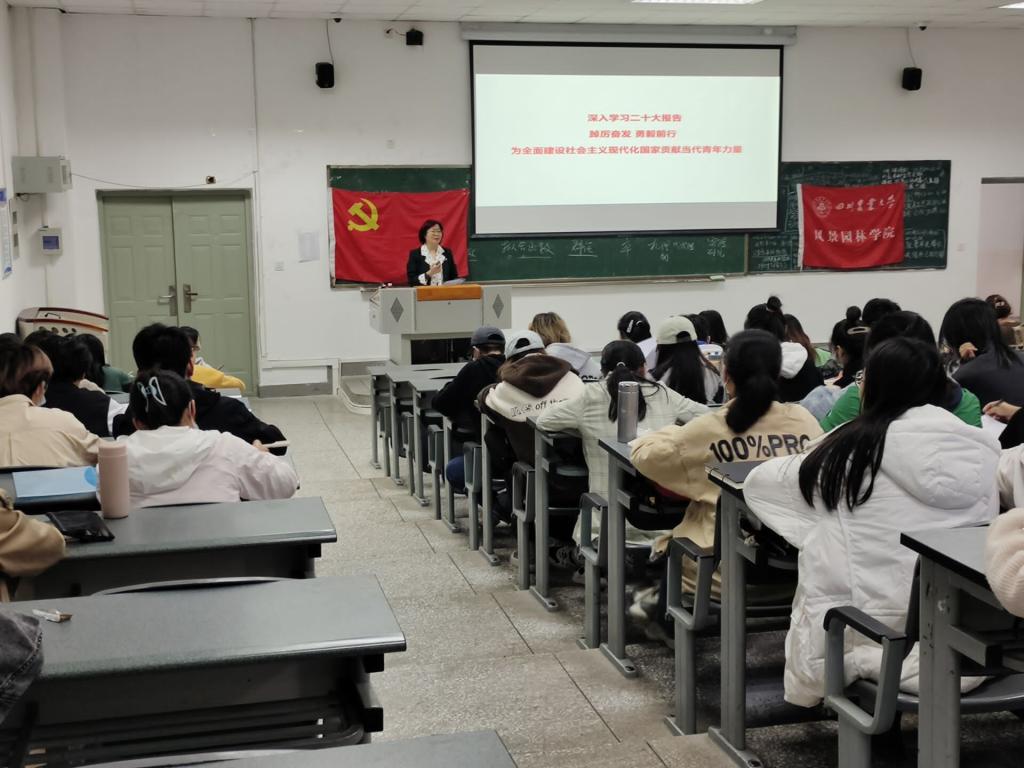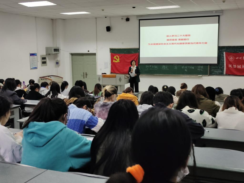 李西带领入党积极分子解析了党的二十大“高举中国特色社会主义伟大旗帜,全面贯彻习近平新时代中国特色社会主义思想,弘扬伟大建党精神,自信自强、守正创新,踔厉奋发、勇毅前行,为全面建设社会主义现代化国家、全面推进中华民族伟大复兴而团结奋斗”的大会主题,阐释了全面建设社会主义现代化国家的目标。李西还结合部分环境、景观设计的实例,与低调看球 入党积极分子一起学习讨论了党的二十大报告中有关“推进美丽中国建设”“人与自然和谐共生”的内容,引领同学要学以致用,努力投身于“推动绿色发展,促进人与自然和谐共生”“绿水青山”的建设事业之中。