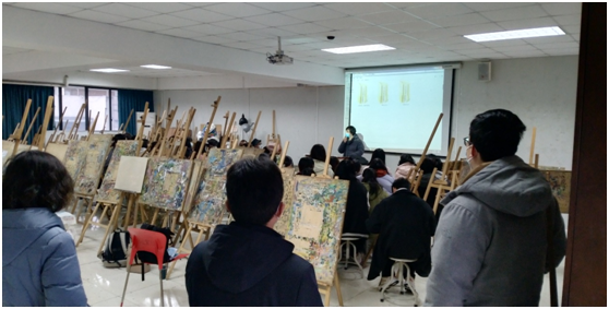 在《园林艺术》课堂上师生佩戴口罩,严峻的防疫压力依然不能影响正常教学