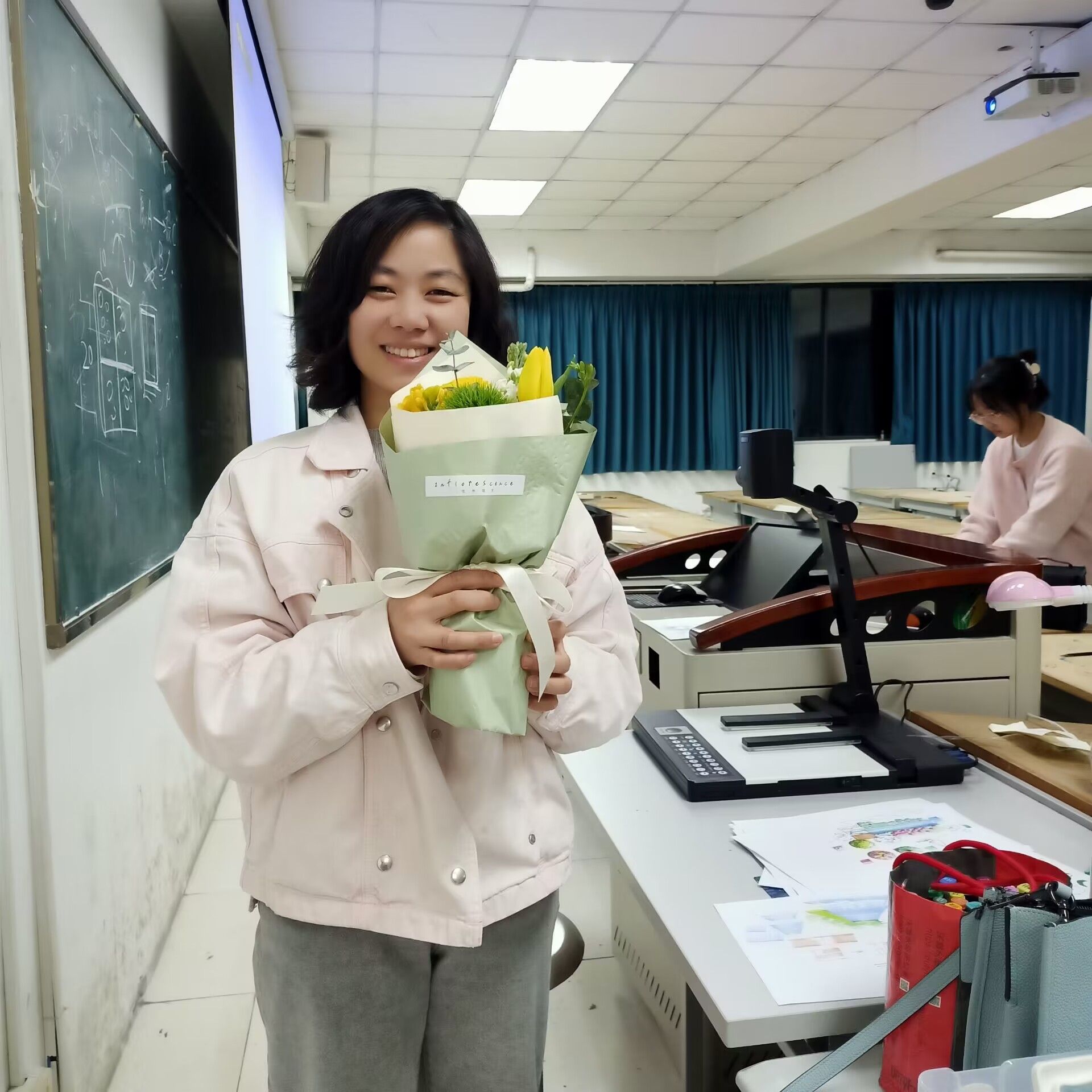 “有时总还是难为情直接表达,用这种集体送上意外惊喜的方式,也能让老师们感受到我们的祝福,认真授课的他们,是最美的样子。看到老师们收到花时的惊喜,我们也都非常开心。”不少参与定制手捧花的风院学子希望老师们感受到他们含蓄的表达。收到话的女老师们也都纷纷祝福自己的学生能在今后的舞台绽放绚丽的青春之花。