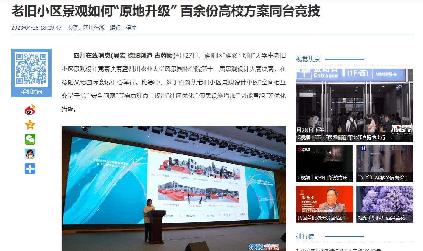 四川在线消息(吴宏 德阳频道 古蓉媛)4月27日,旌阳区“旌彩·飞阳”大学生老旧小区景观设计竞赛决赛暨低调看球-低调jrs看球app