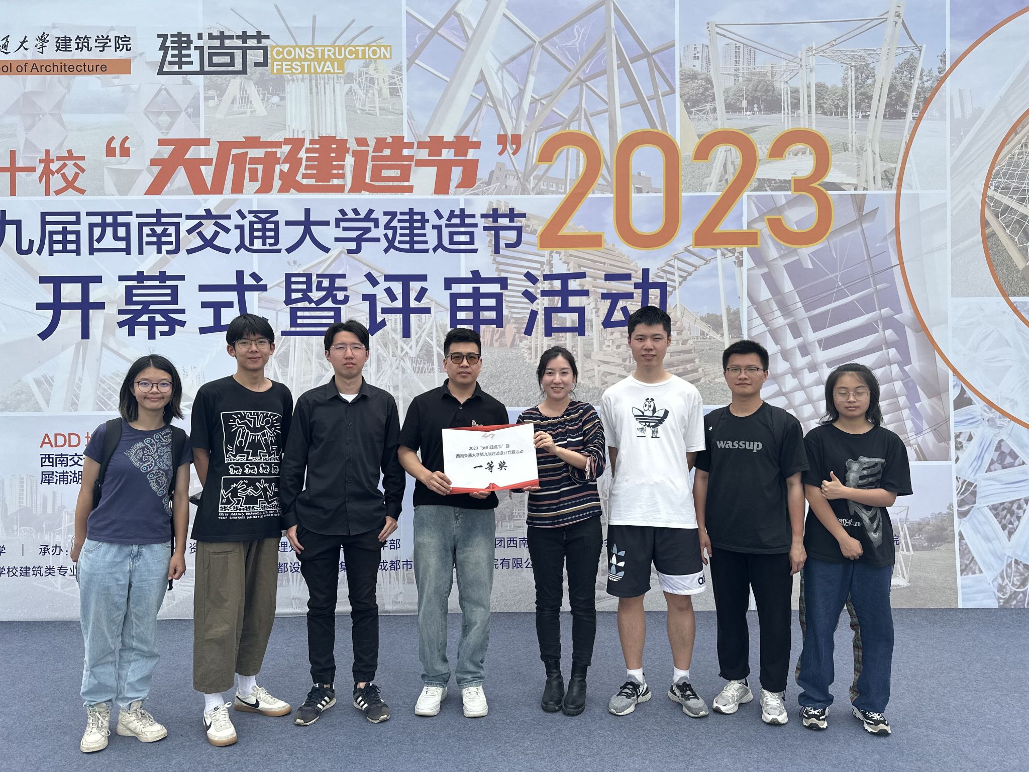 5月5日上午,第九届“天府建造节”设计竞赛在西南交通大学开幕。我校低调看球 师生团队搭建作品“蓉洄锦韵”以第一名的总成绩从27个终评作品中脱颖而出,斩获本次设计竞赛唯一一等奖。
