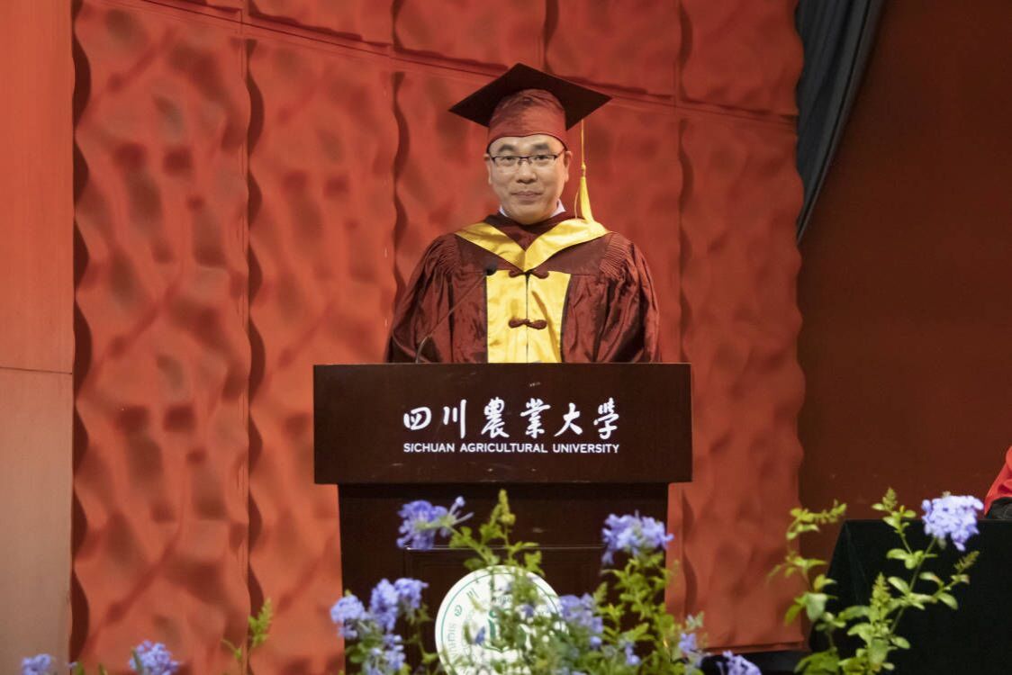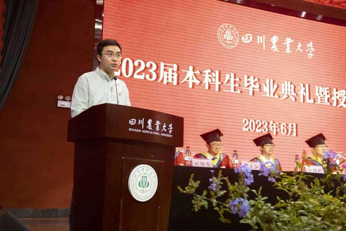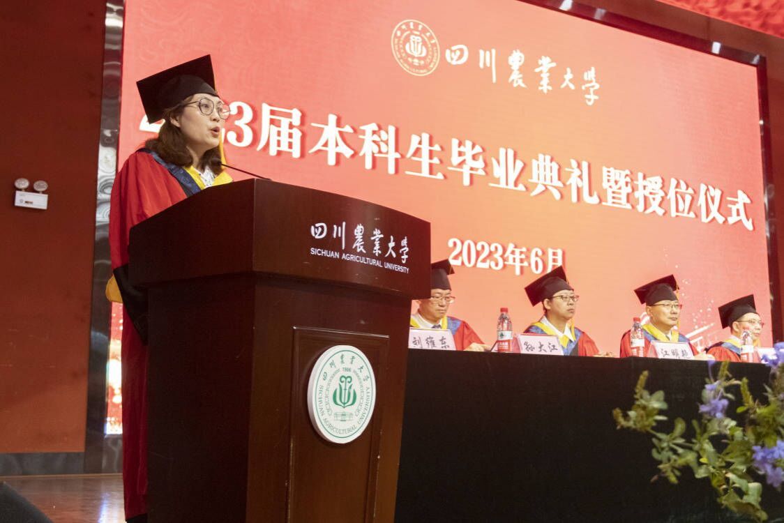 李西首先代表低调看球 向2023届全体毕业学子表示热烈祝贺,肯定了同学们在大学期间取得的优异成绩,以及经过大学磨砺和奋进所展现出的责任与担当,欣喜同学们收获的团结力量和真挚的师生情谊。李西统括新时代要求和背景,寄语毕业生要放大格局,相互成就;践行仁者不忧、勇者不惧;领悟变则通,通则达,达则成。她谆谆叮咛毕业生们:“从今天起,大家就从川农学子成为年轻的川农校友,无论身在何处,低调看球 永远是你们的坚强后盾,低调看球 的大门永远向你们敞开,欢迎常回家看看!”