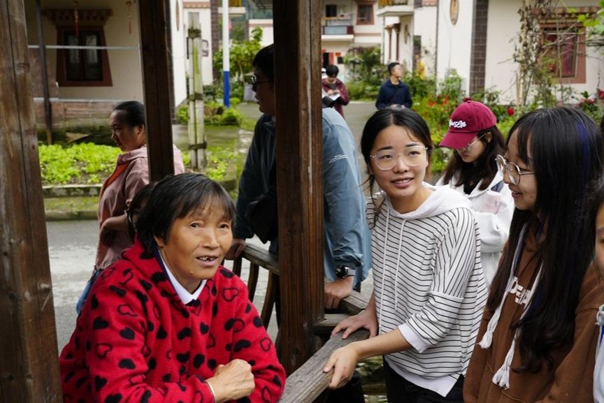 随后,同学们在老师带领下在映秀镇鱼子溪村从社区空间环境、建筑、经济收入、生态管控与产业、福祉现状等方面展开了深度调查和访谈工作,为后续的大熊猫国家公园入口社区创新与融合发展思考与建议收集到了宝贵的第一手资料。