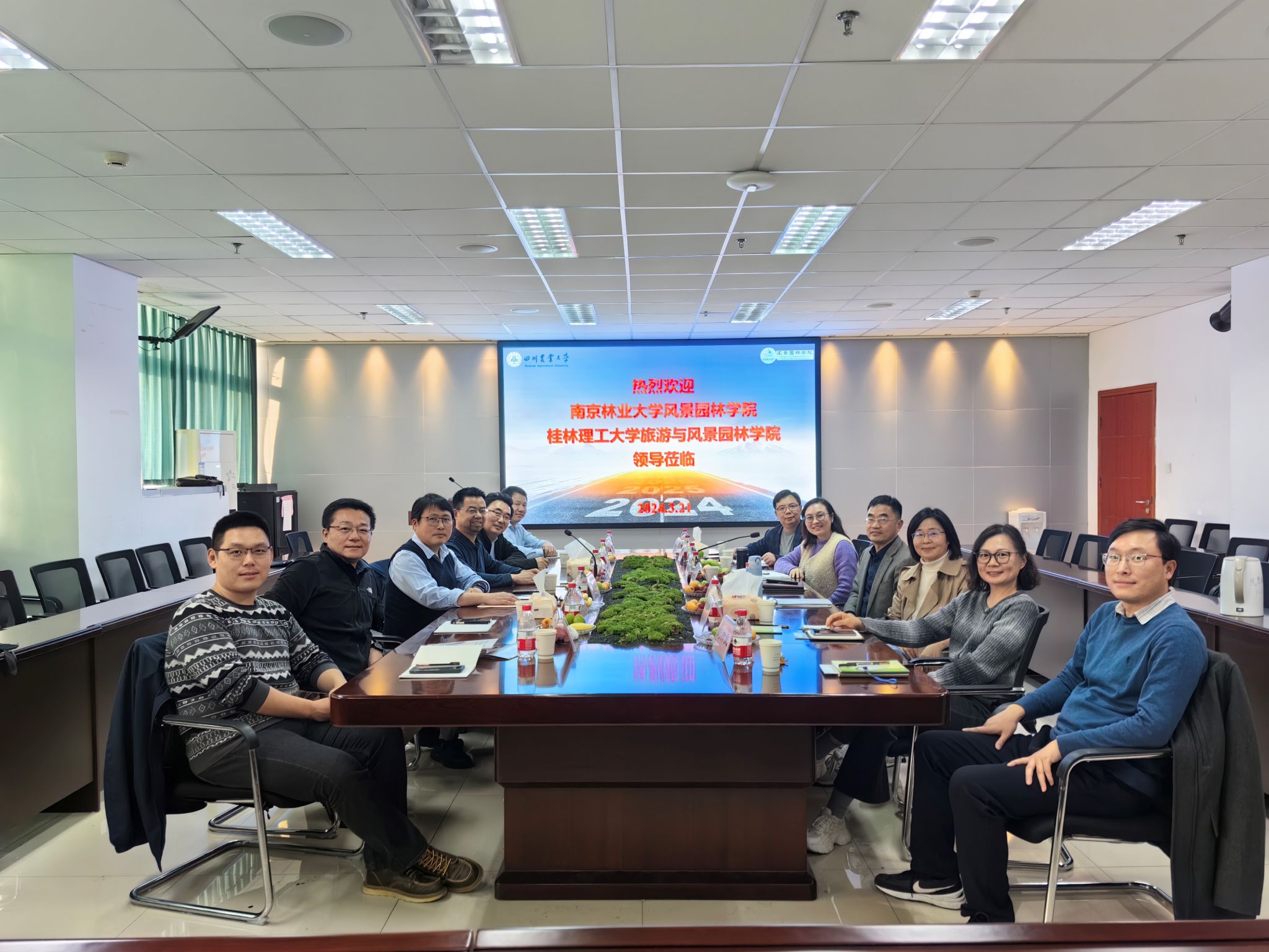 3月21日,南京林业大学低调看球 院长邱冰、副院长曹加杰、低调看球 办公室主任张跃,桂林理工大学旅游与低调看球 院长郑文俊、副院长胡金龙、风景园林系主任徐孟远等一行6人到我校低调看球 交流。